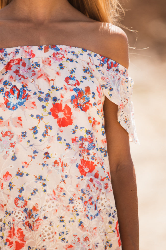 The super sweet babydoll silhouette is back this season, with a stunning off the shoulder neckline. The Bella Dress pairs perfectly with tan gladiator sandals and a choker tie necklace!