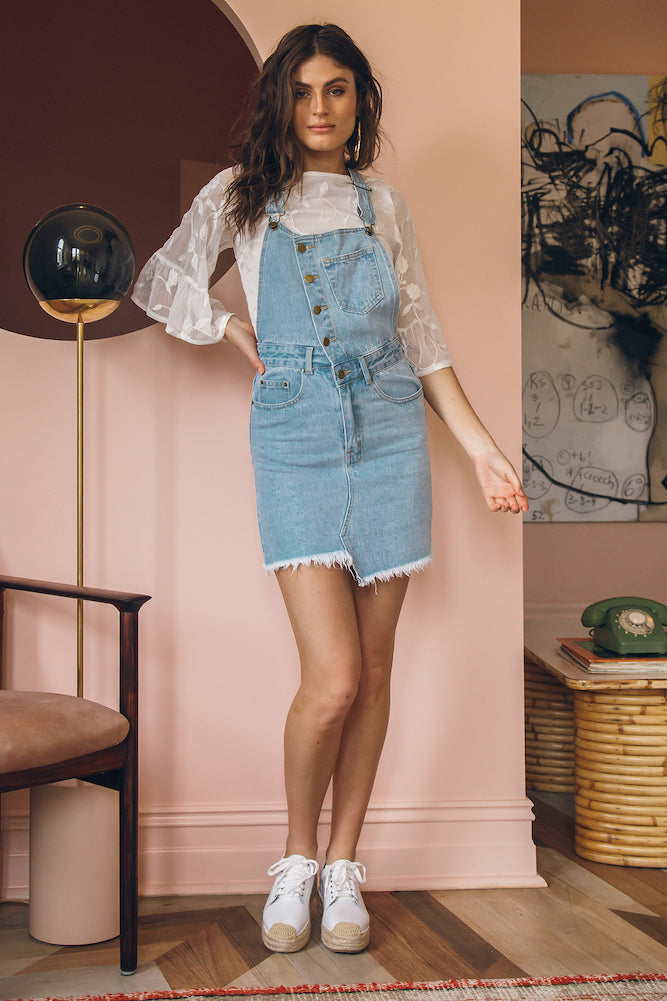 Inspired by our Southern muses the Born And Raised Overalls Dress is a new season essential! With a button down front, it's perfect for wearing done up with a lacey bralet or half undone and layered over a simple white tee. Just finish the look with vintage cowboy booties!