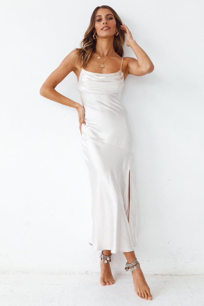 Let the Burning Bright Maxi Dress emphasise your inner glow for those romantic evenings overlooking the city. Style yours with neutral block heels and gold adornments.