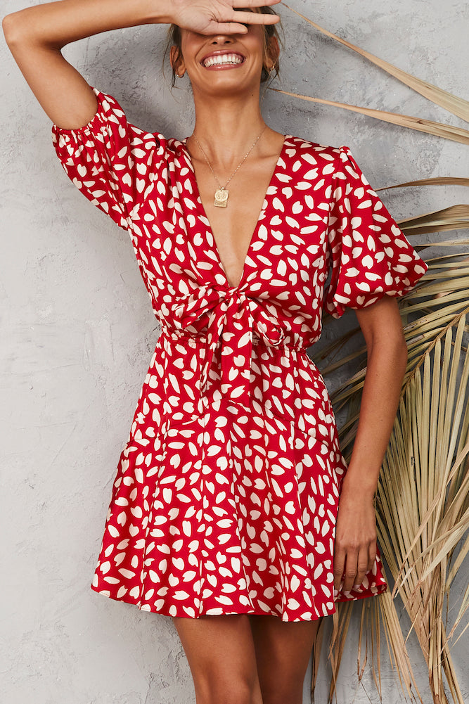 The Call Of Summer Dress has us reminiscing about evenings by the beach and golden hour wineglasses. Style yours with gold adornments and neutral block heels for an effortless look from day to night.
