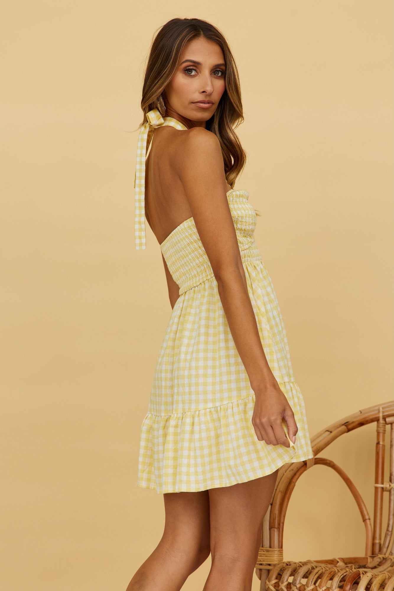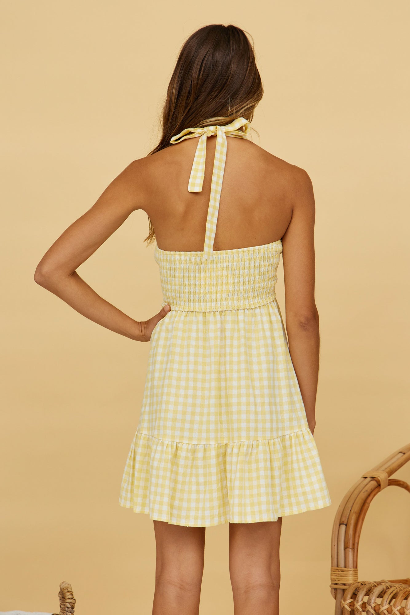 - Gingham print throughout