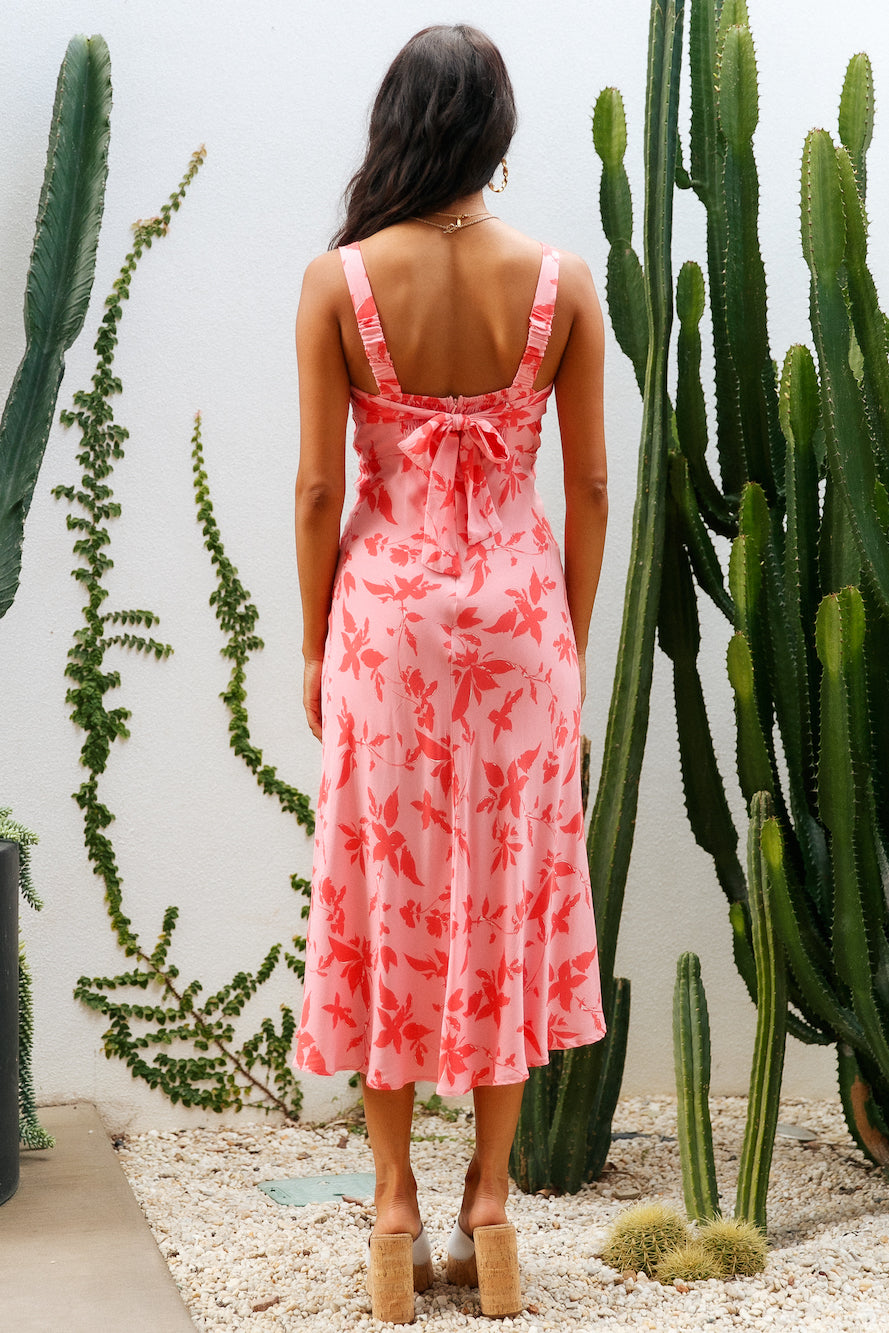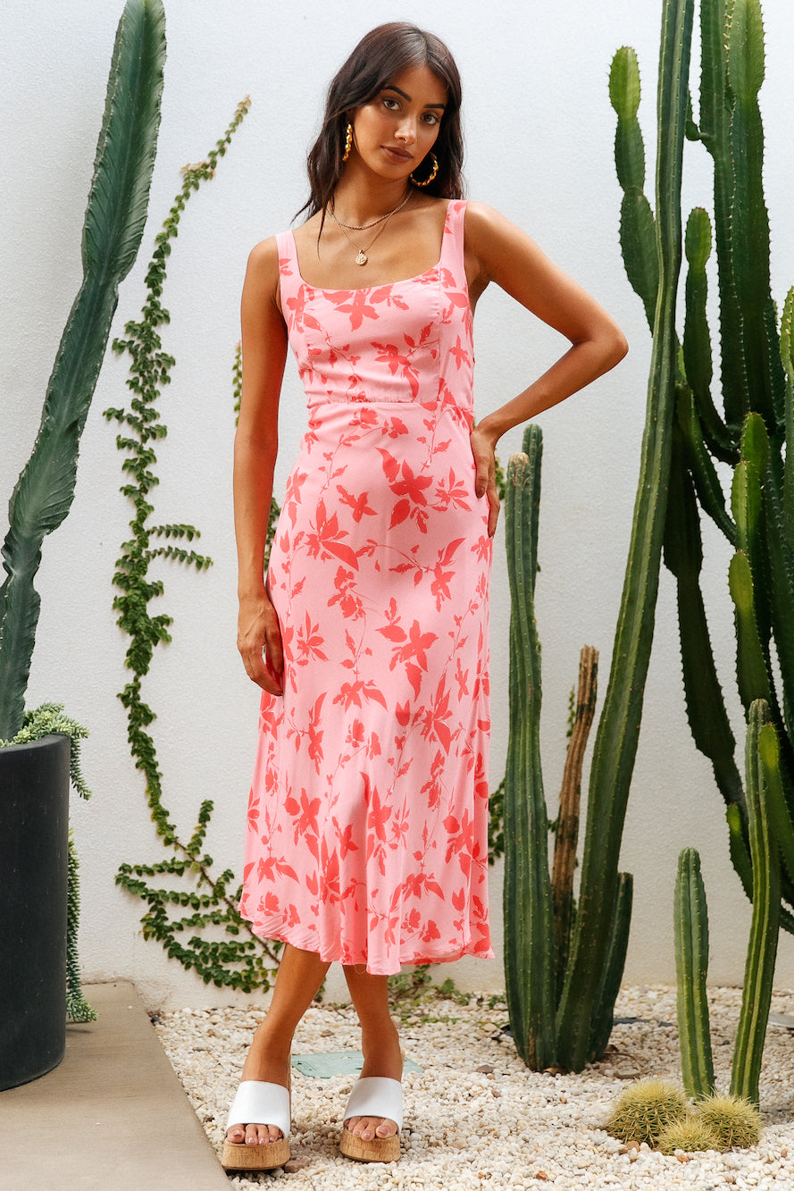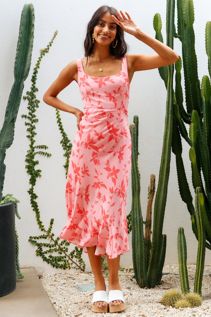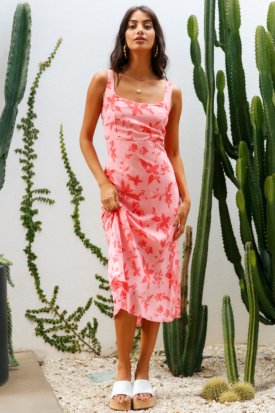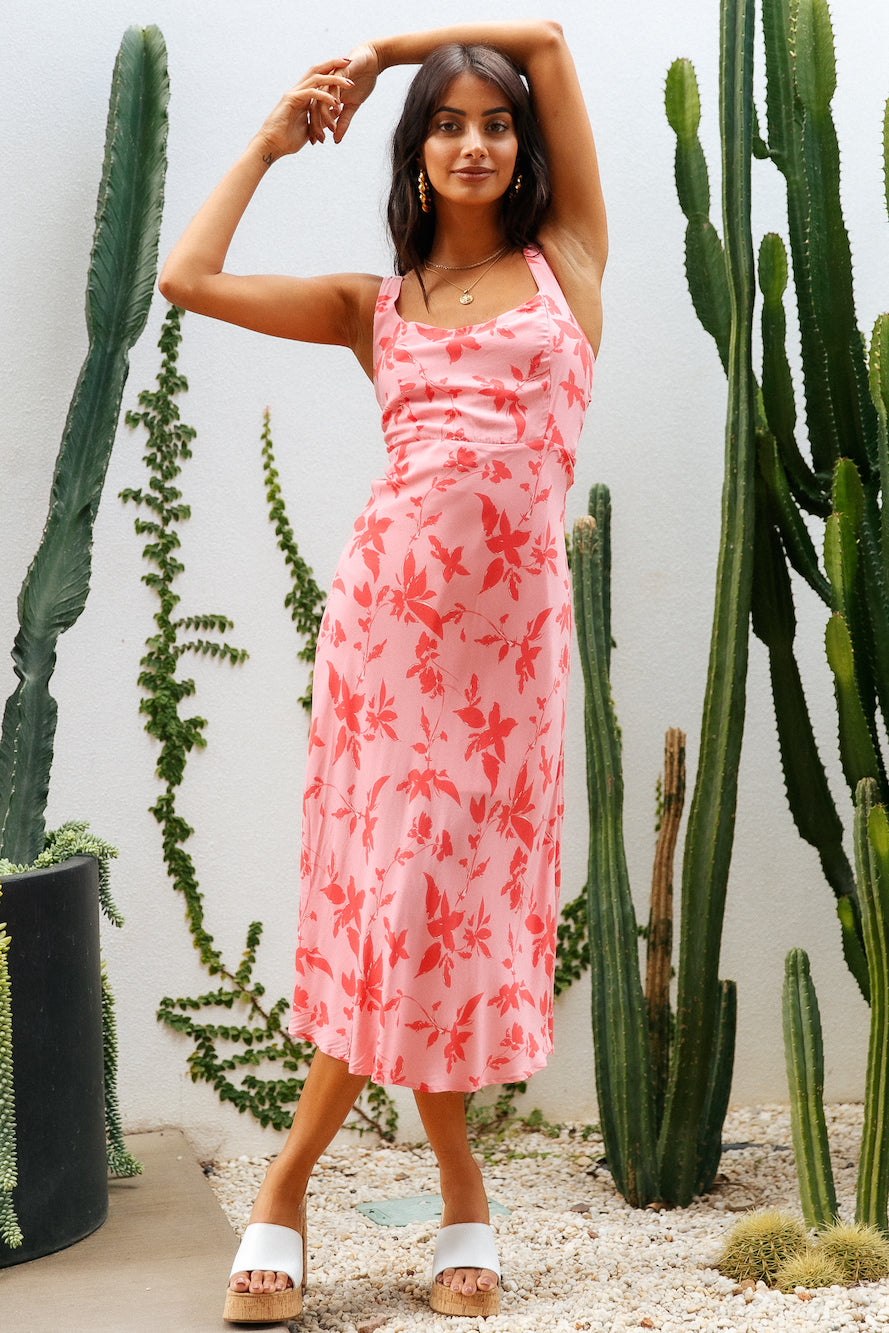The Colours Of Love Midi Dress features the daintiest florals and a sweetheart neckline, perfect for afternoon dates in Paris! We're styling ours with neutral block heels and gold adornments.