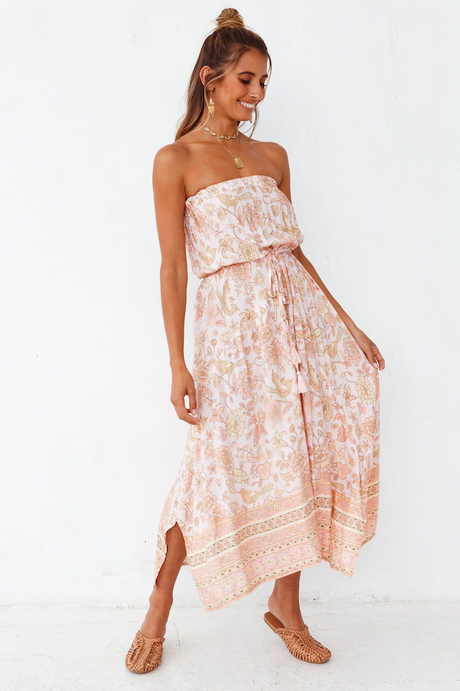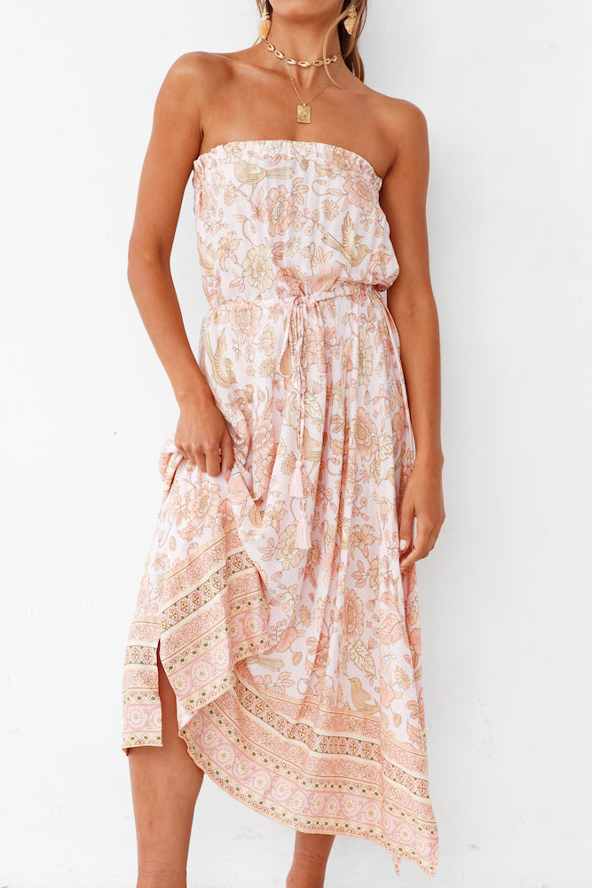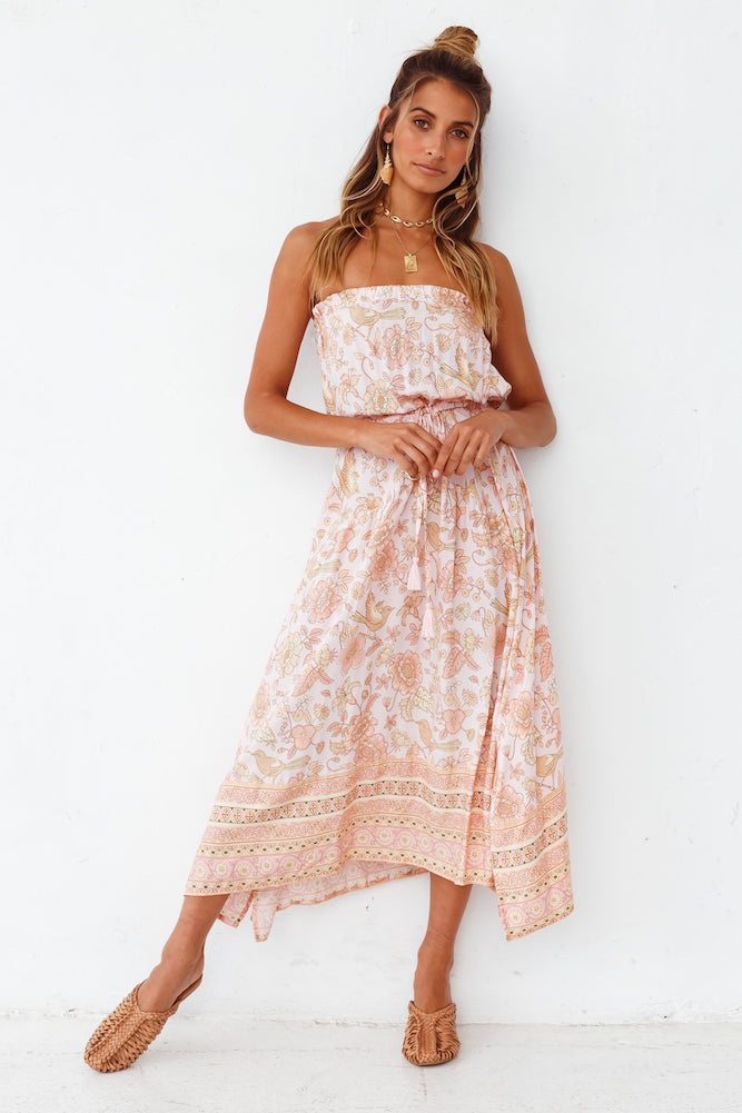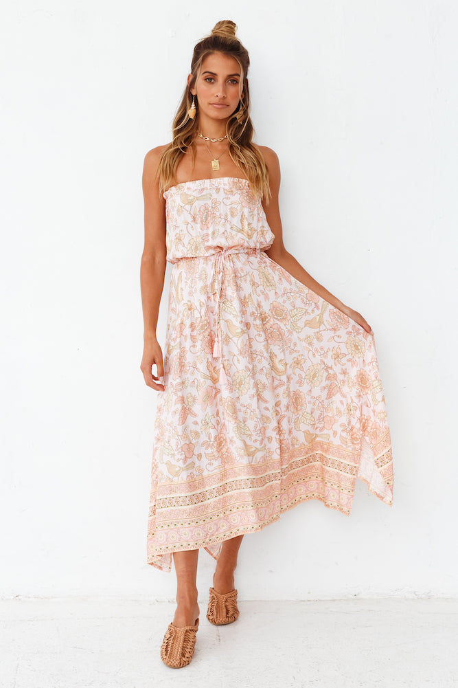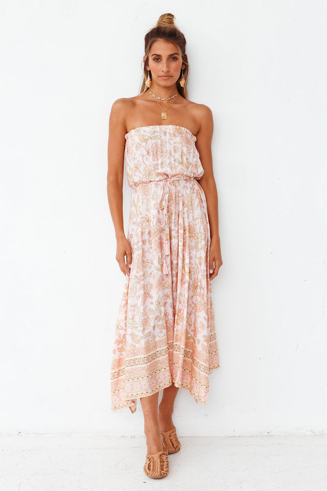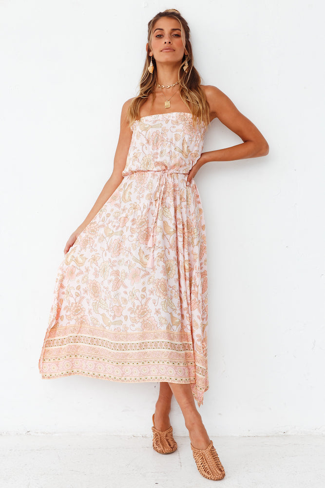 Soak up the sun by the pool in our Cordoba Midi Dress! We're styling ours with a wide-brimmed hat and sandals for the perfect beachy look.
