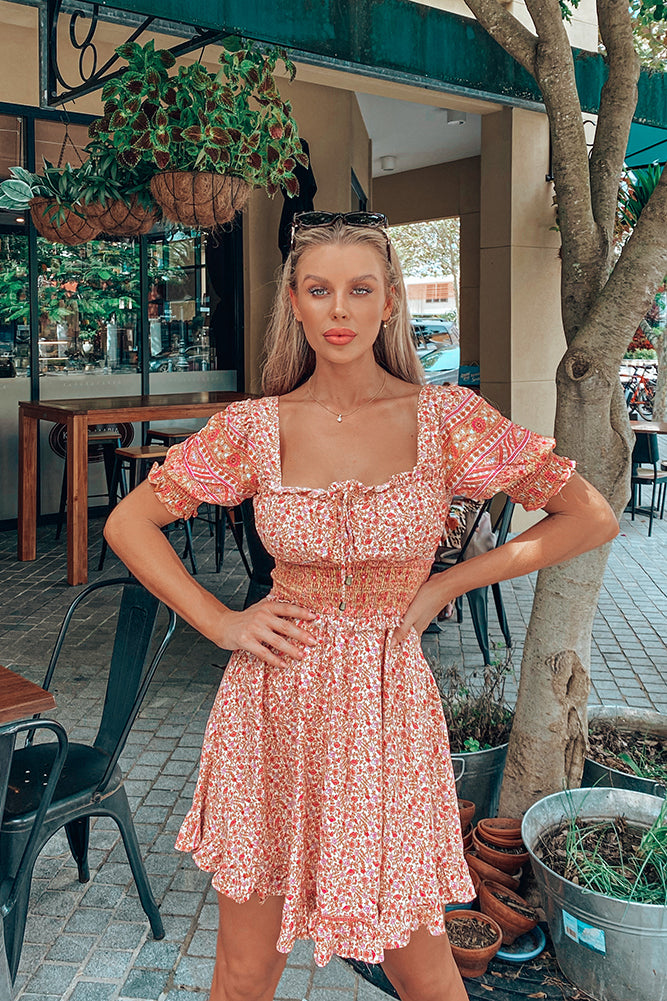 Our Cosmopolitan Dress was made for the wanderers! Style yours with slides and a woven bag.