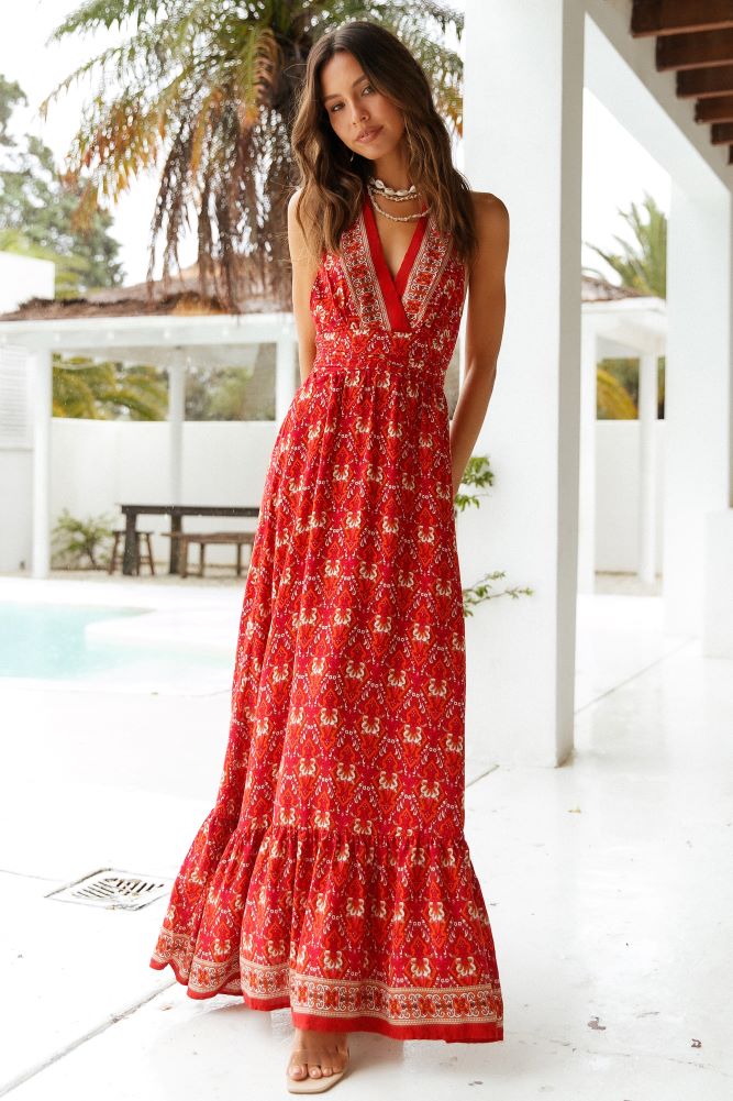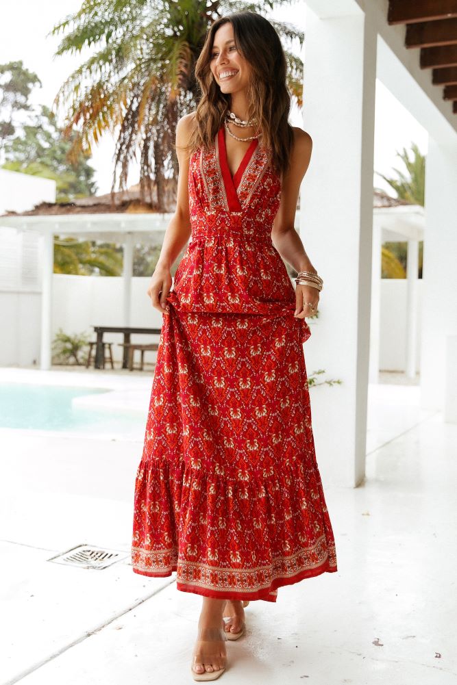 Take it slow and live your life on island time in our Denpasar Dreaming Maxi Dress. We'll be showing off golden skin and styling ours with neutral block heels and gold adornments.