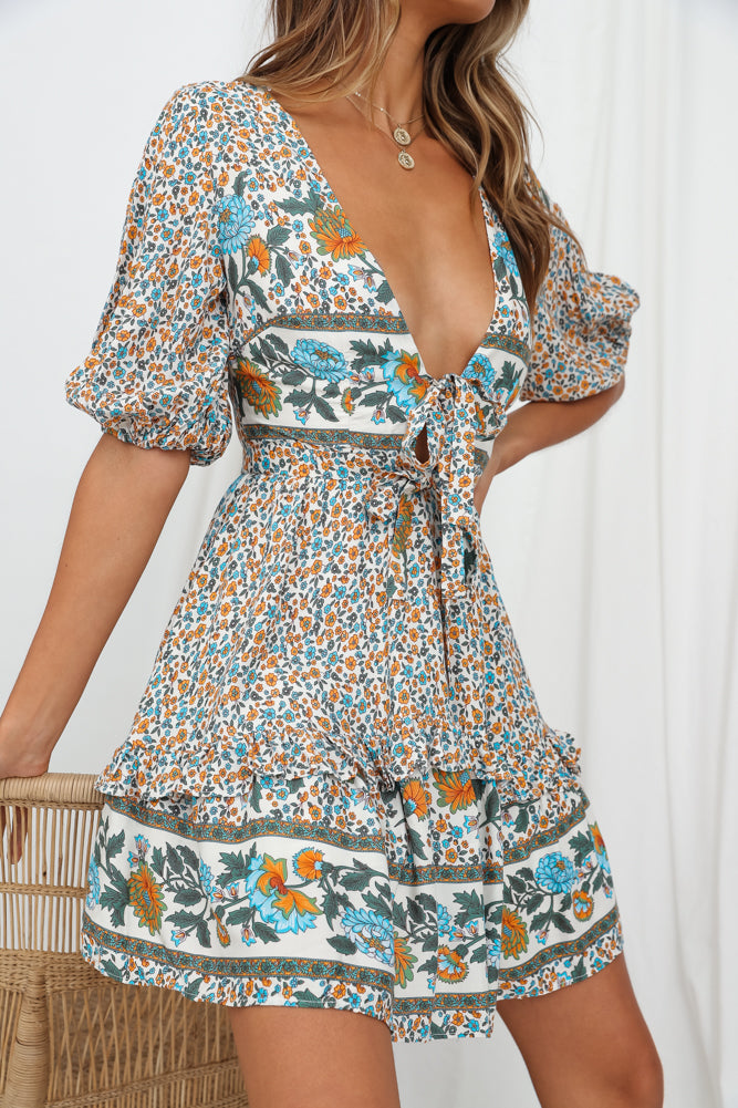Want to escape the city? Dream of the sunshine and sand in our whimsical Desert Duduk Dress! Style yours with woven slides and a rancher hat to finish your vibe.