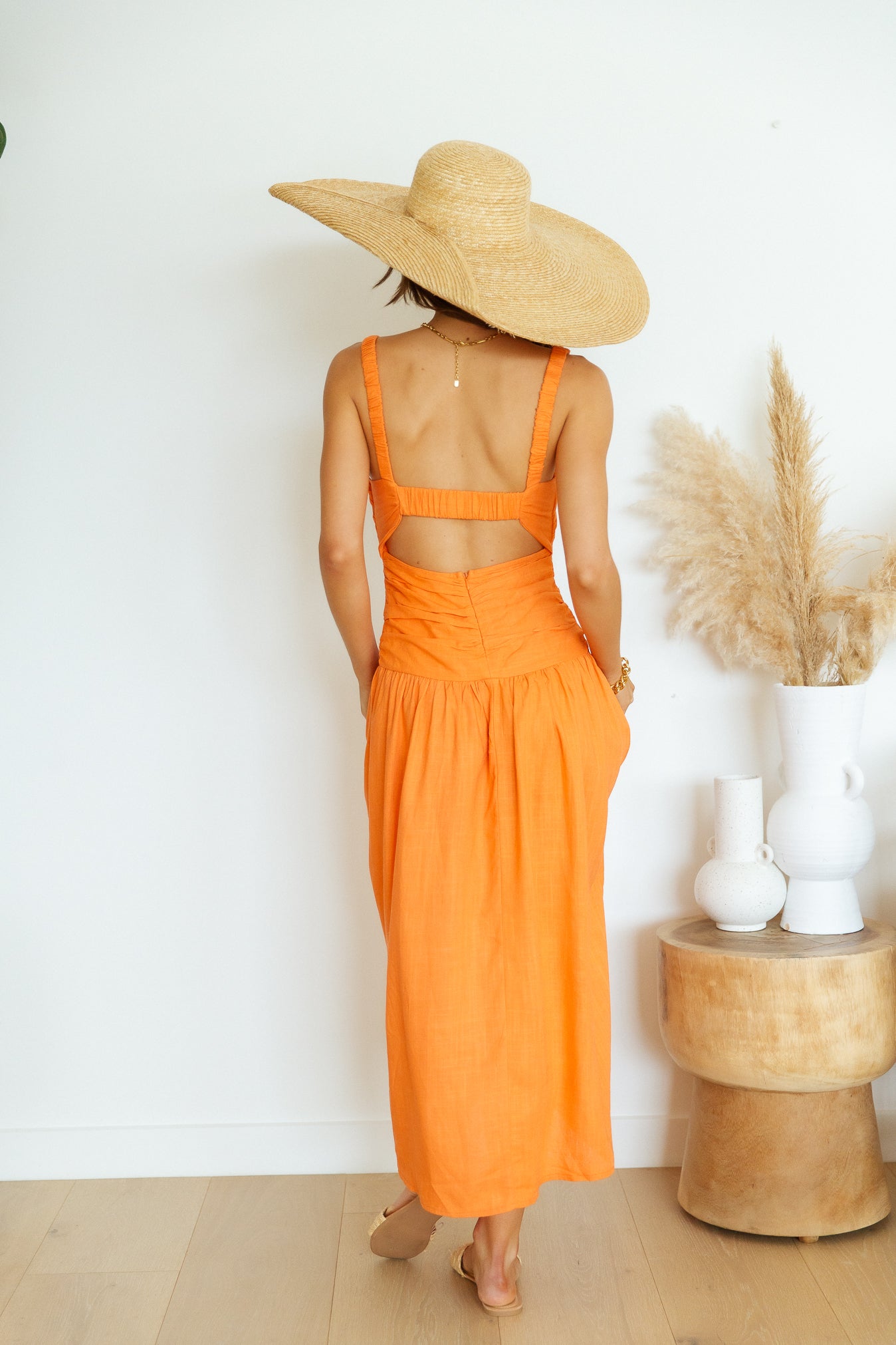 Dream Beyond in this flowy maxi dress on your next adventure to the quiet seasides of the Amalfi Coast. Style yours with neutral block heels and gold adornments!