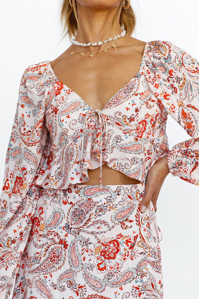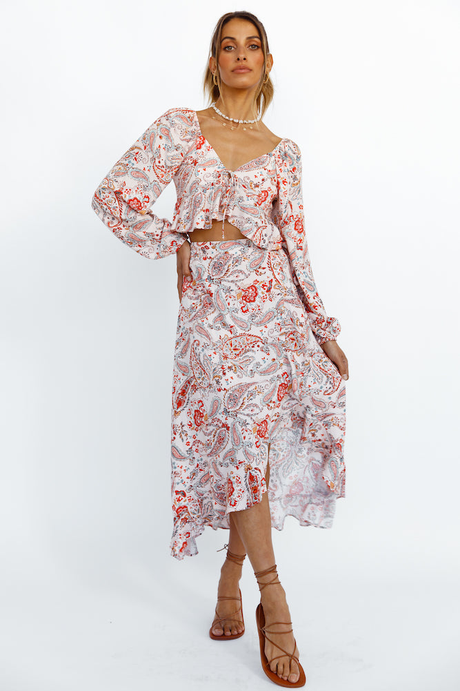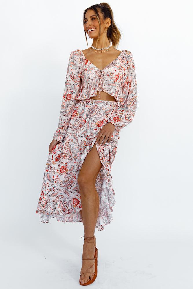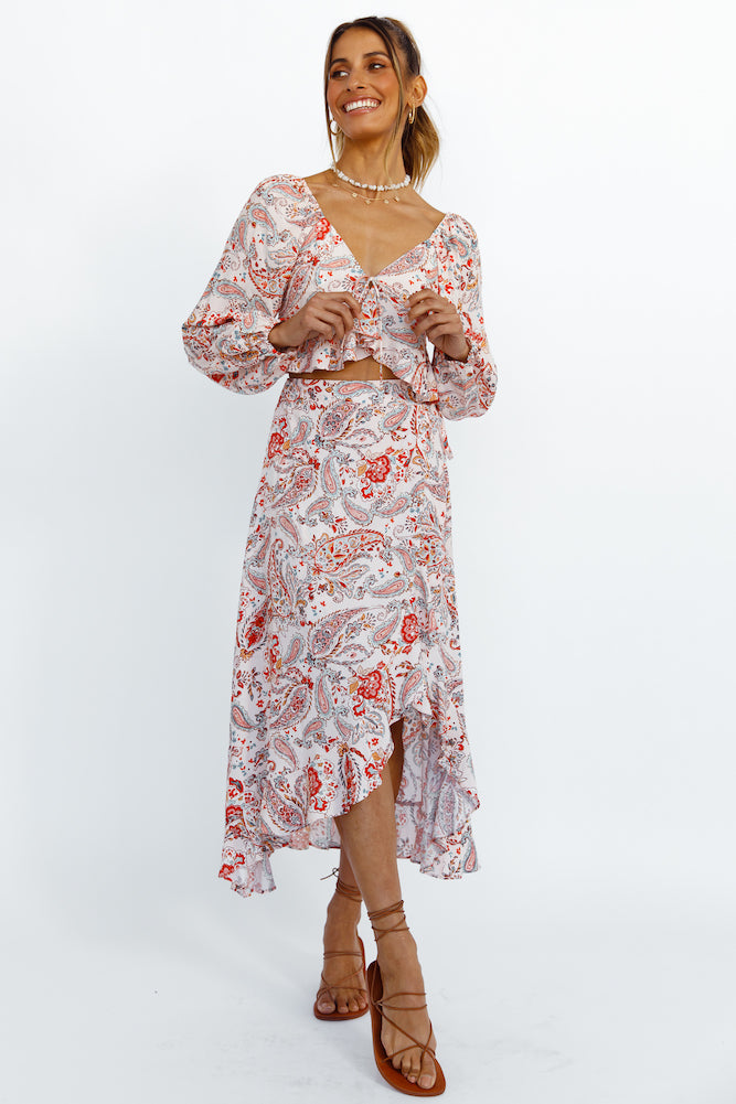 The Drift Away Crop Top reminds us of fulfilling our inner wanderlust and relaxing on beaches around the world! We'll be styling ours with the matching skirt and lace-up sandals.