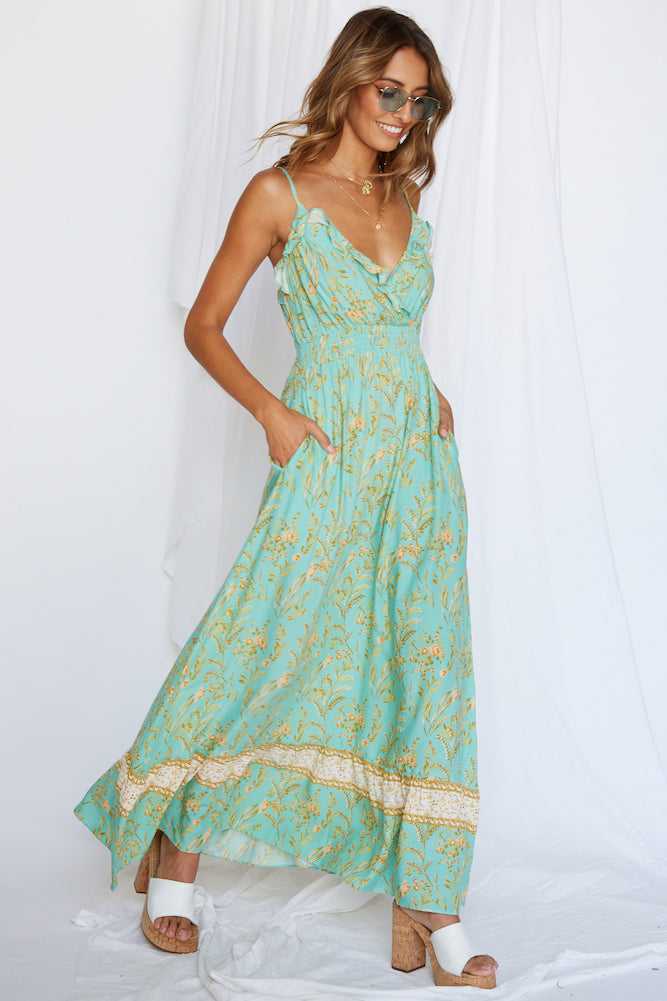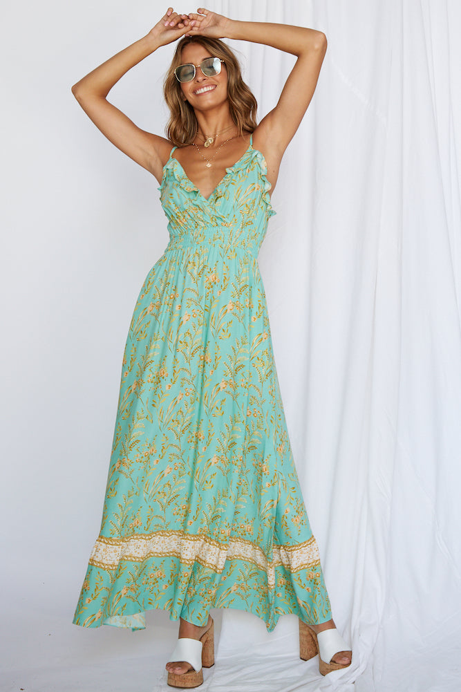 Catch those rays in our Duke Maxi Dress. Style yours with a straw hat and vintage gold jewellery.
