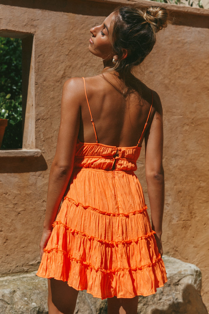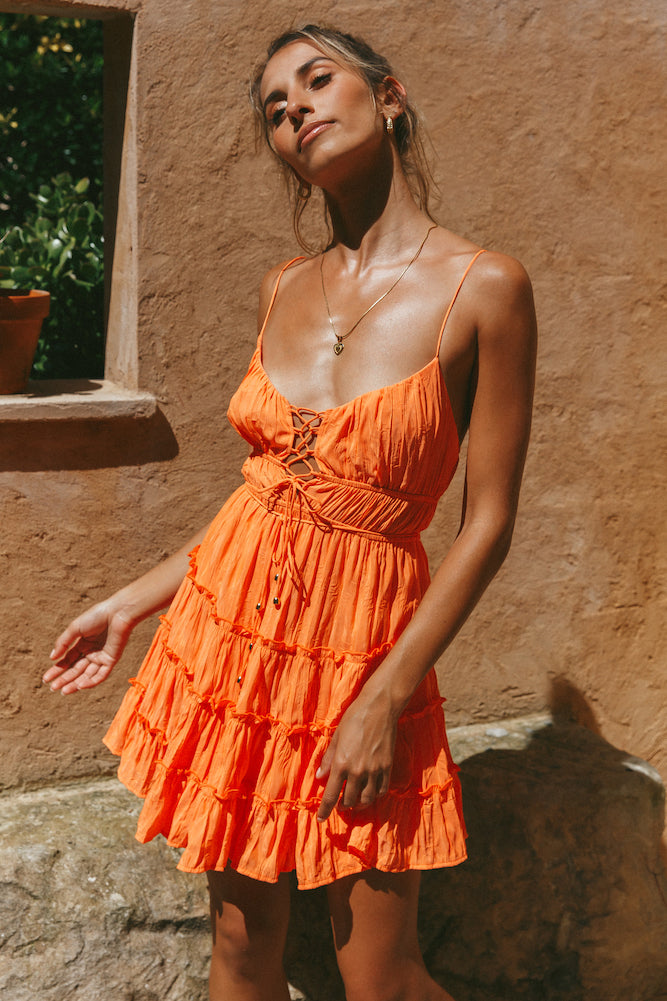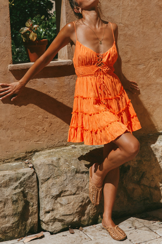 Match the loud and bright atmosphere of Madrid in the Fruity Mornings Dress! We're styling ours with a waist bag and straw hat for our next festival look.