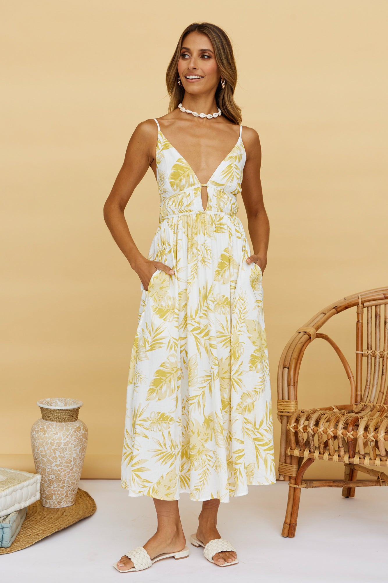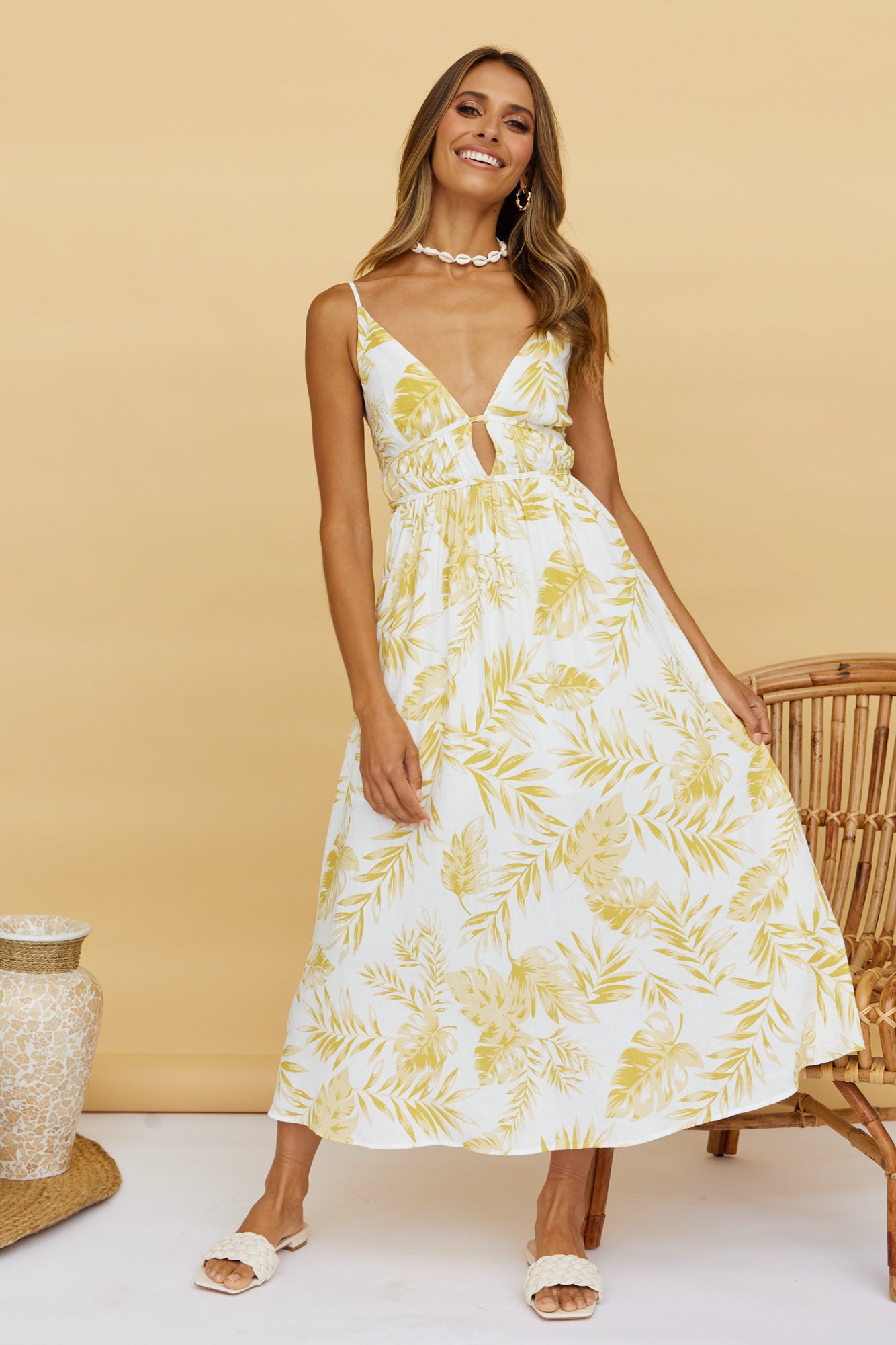 The Full Bloom Maxi Dress has us dreaming of summers on island time at our dream destinations of Bali, Maldives, and Seychelles. Style yours with lace-up sandals and gold adornments.