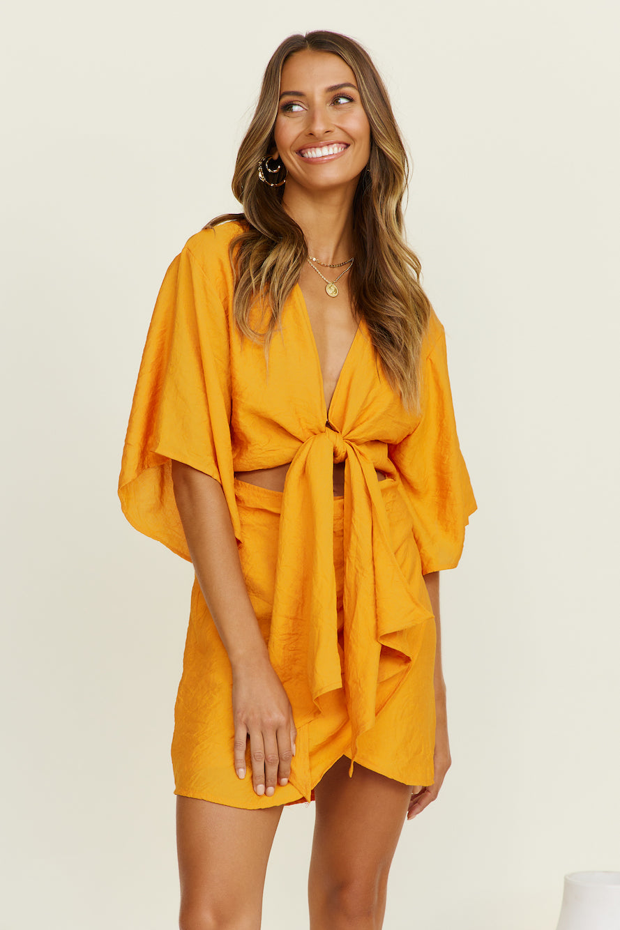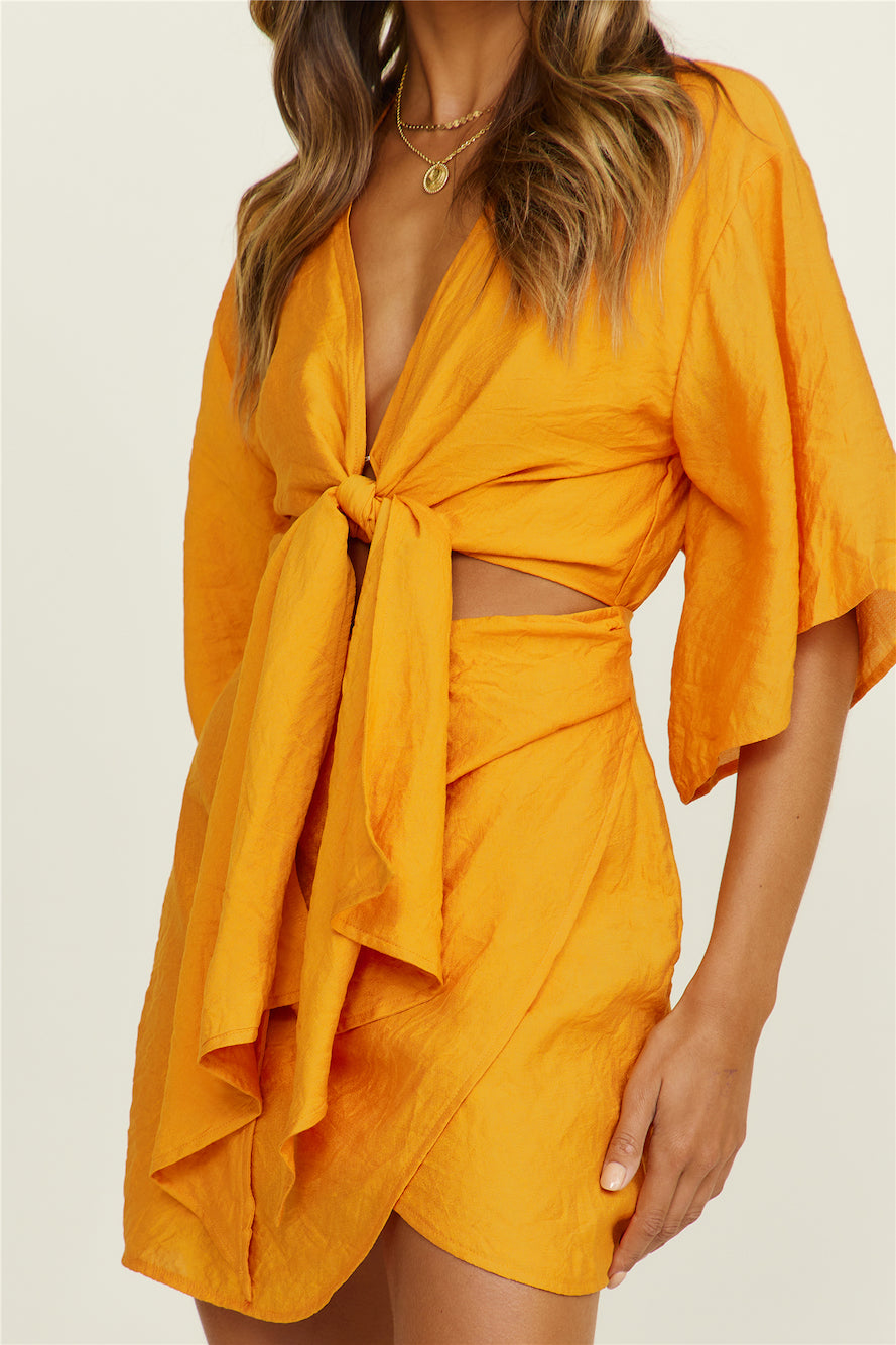 Glow extra bright under the sun in our Golden Hour Dress. Perfect for days and nights with your loved ones, style yours with neutral block heels and gold adornments.
