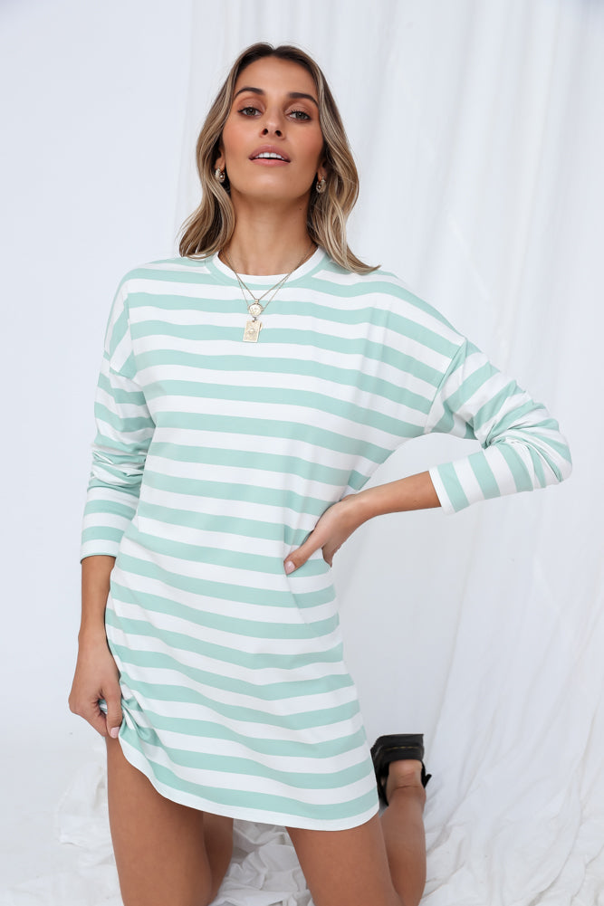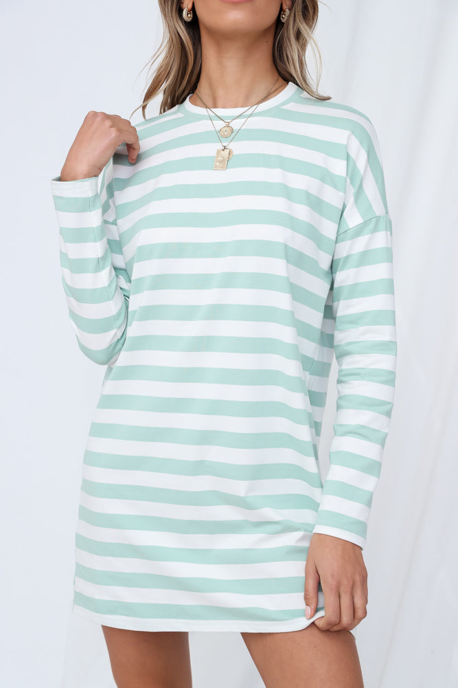 Ease into a long weekend getaway in the breezy striped Happy Memories Tee Dress. Team this nautical striped dress with sneakers and sunnies.