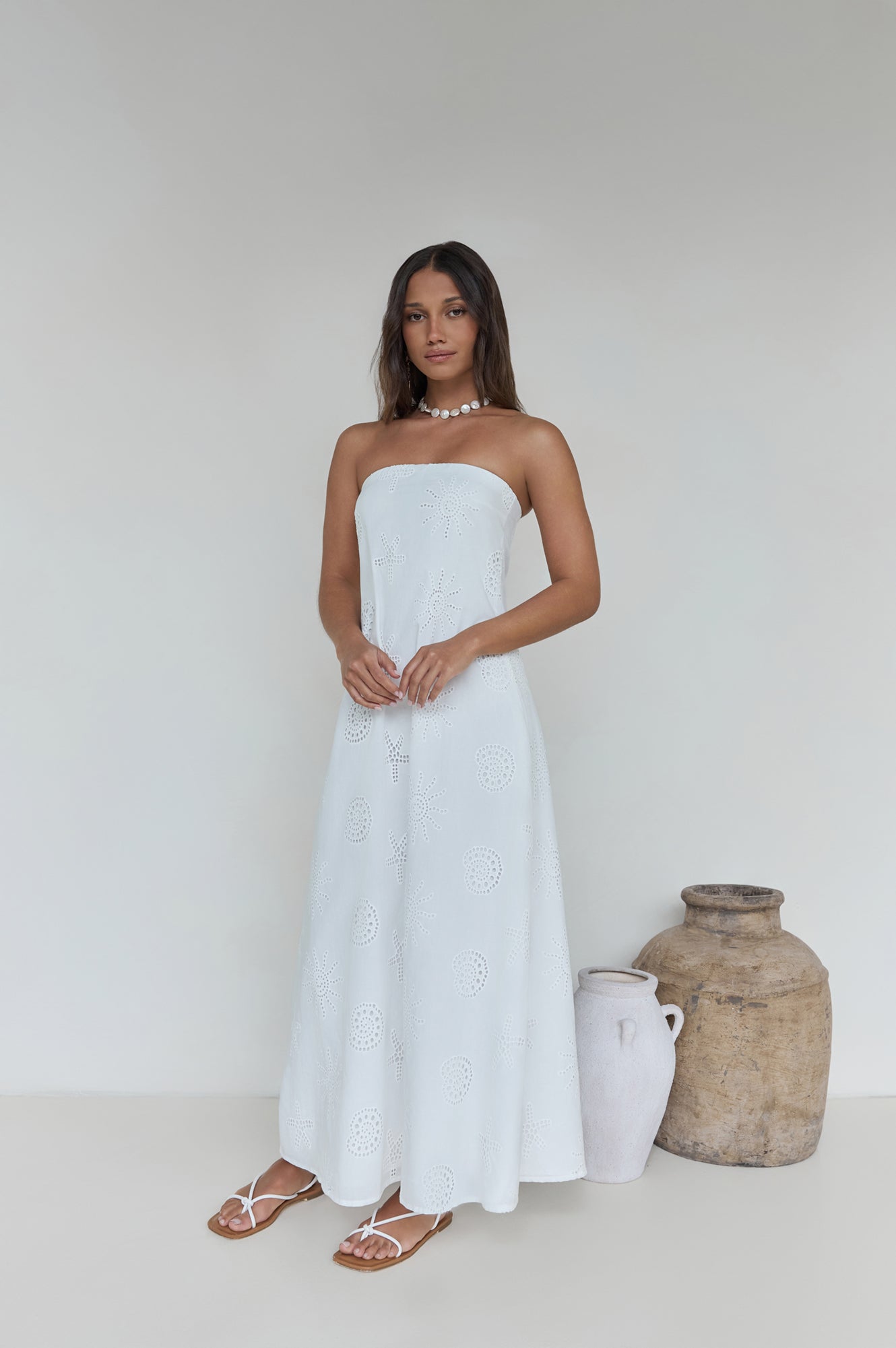 Feel the sun on your skin in the Heart To Heart Strapless Maxi Dress White, a dreamy piece perfect for Meditteranean summer. Style with sandals and a mini shoulder bag as you explore the city.