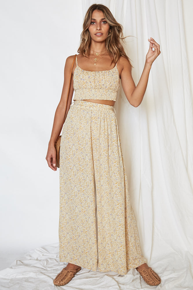 We're dreaming of sunny days at the beach in our Into The Moonlight Crop Top! Style yours with Into The Moonlight Pants and shell necklaces.