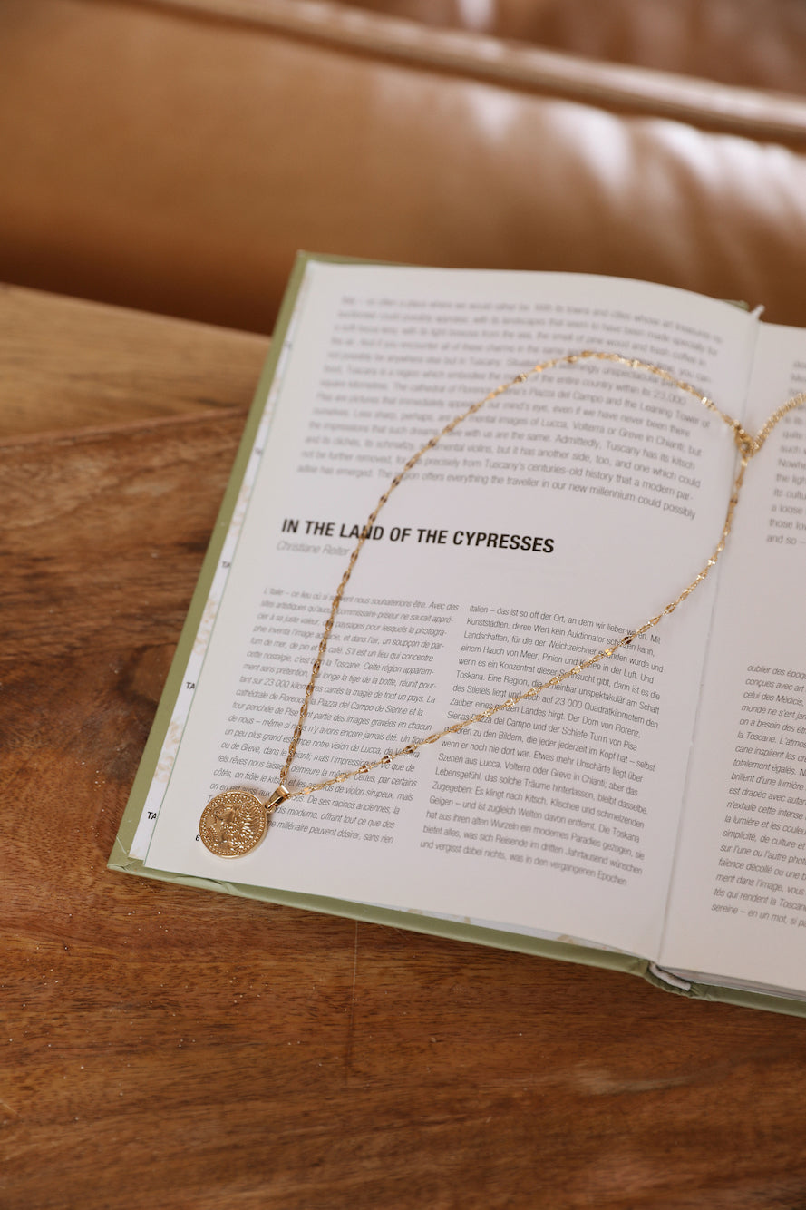 Glow under the sun and stars in the Into The Wishing Well Necklace. Featuring a gold pendant with a shining design, your summer wardrobe will shine with this new addition.