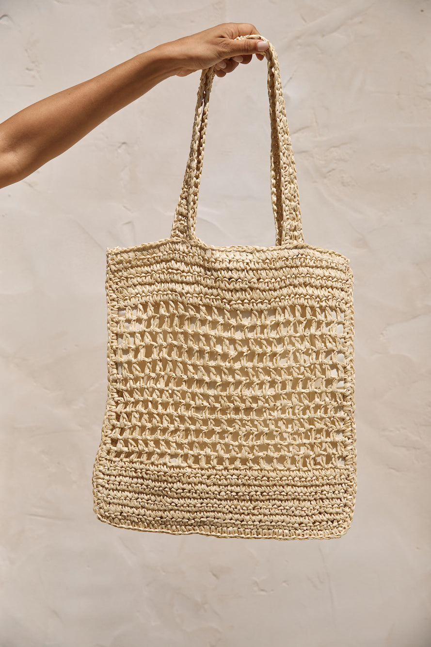 Embrace island vibes with our Island Crochet Tote Bag in Nude, a chic companion for your sun-soaked adventures. Whether you're strolling along the sandy shores of Maui or exploring the colorful markets of Thailand, let this bohemian-inspired tote carry your essentials in style as you soak up the laid-back charm of island life.