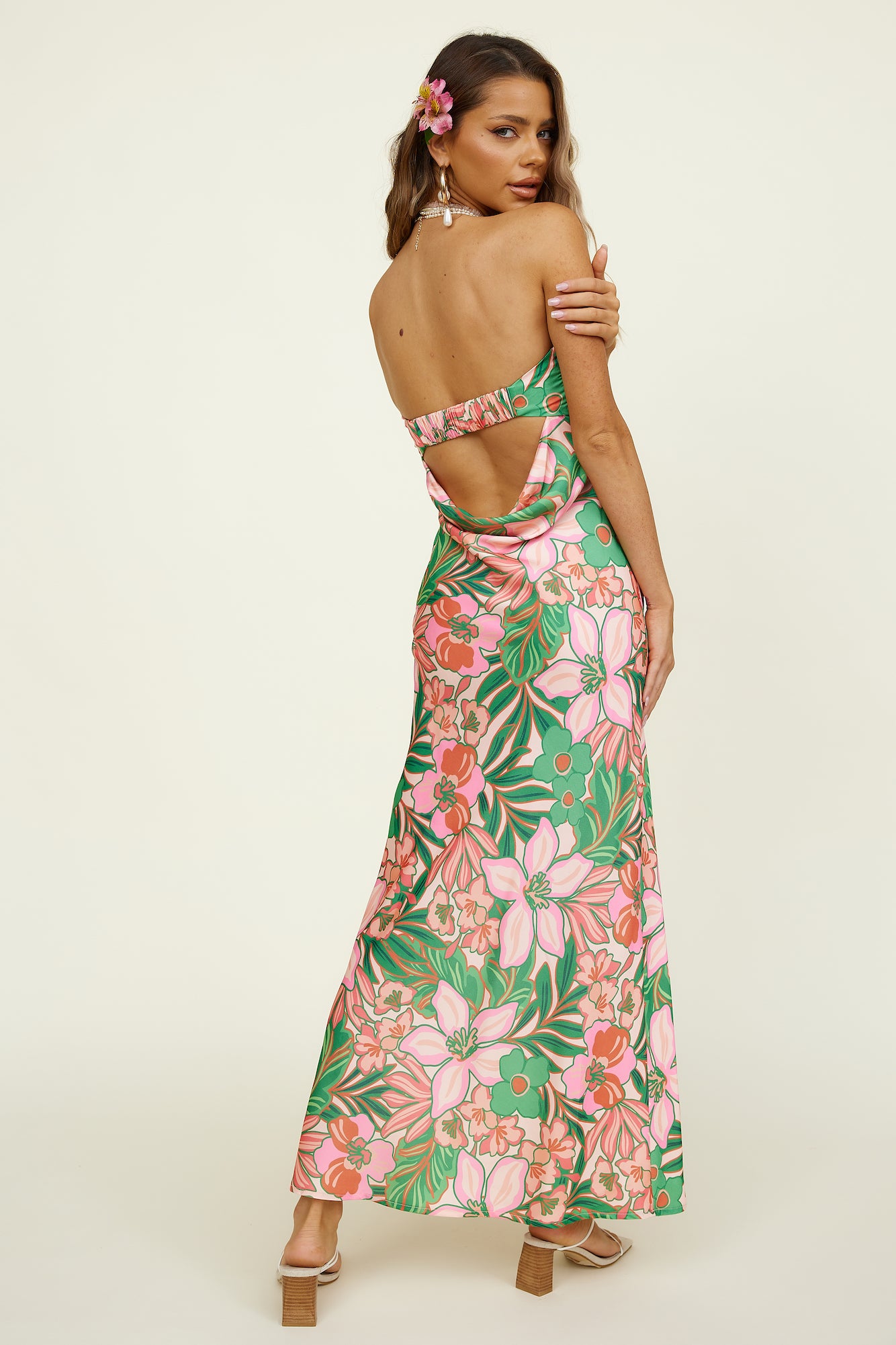 Our Island Palms Maxi Dress was made for those picturesque sunsets in Hawaii. Style yours with lace-up sandals and gold adornments for that breezy vacation look.