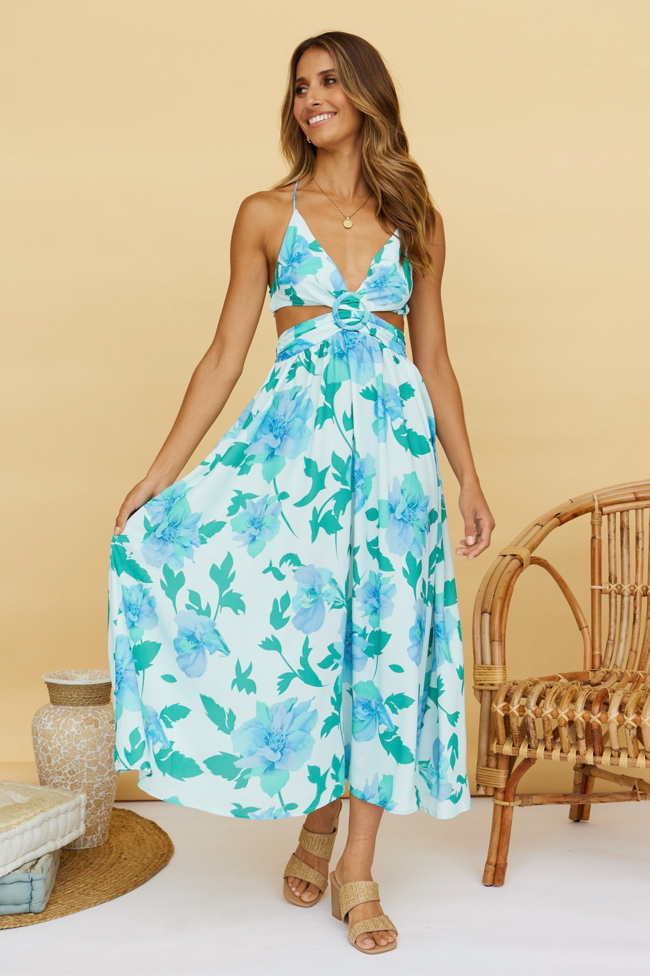 The Kayangel Maxi Dress has us dreaming of our next island getaway and luxe villas where time seems to stop. Style yours with lace-up sandals and sun-kissed skin.