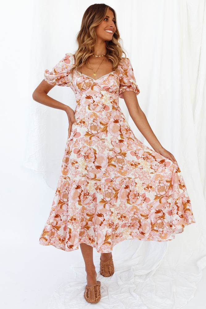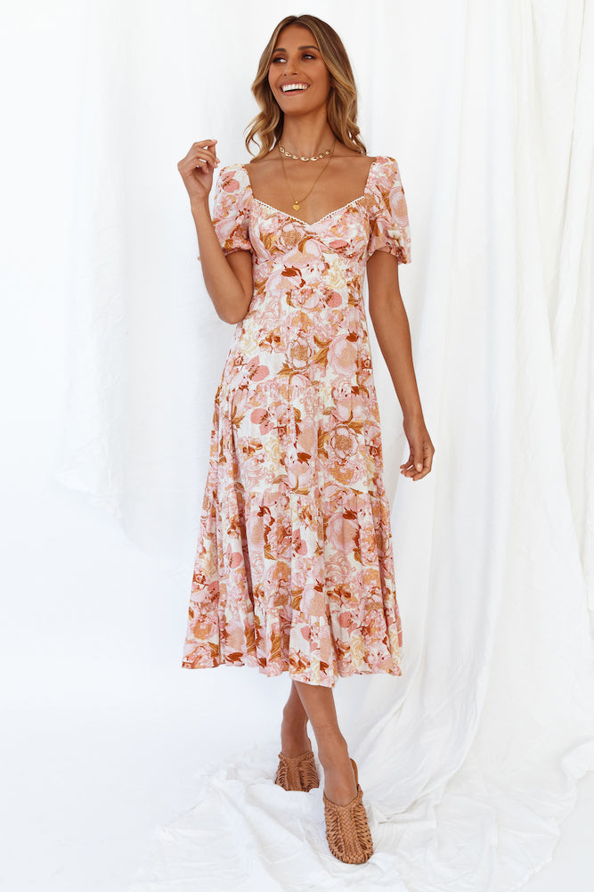 Escape to a tranquil island paradise in our Koka Midi Dress! With its whimsical floral print and flowy silhouette, this dress promises bare-footed walks along pristine white sandy beaches.