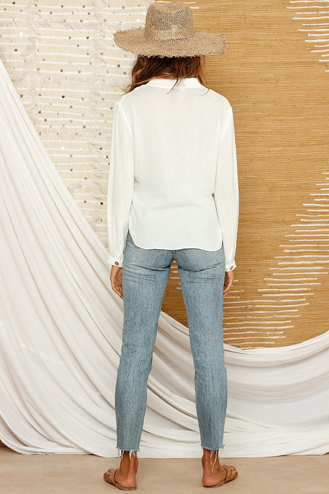 Slip into our Lemon Gum Shirt between swims or pair it with linen shorts when sailing the blue. Featuring wooden-like button, a V neckline and a floaty fit. Style yours with a little black cozi and salty locks.