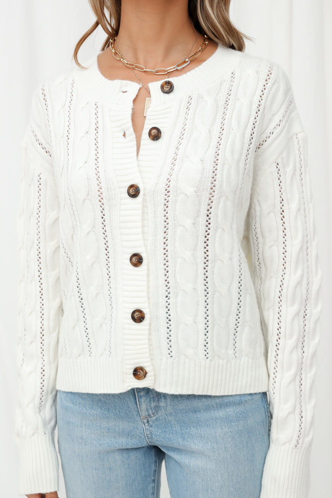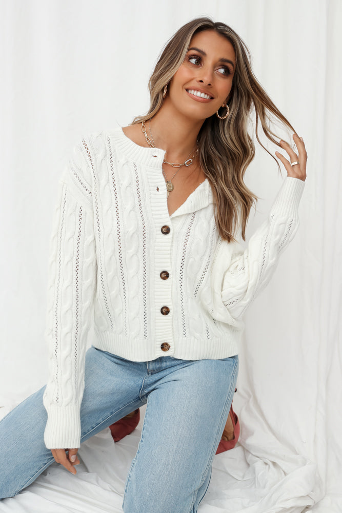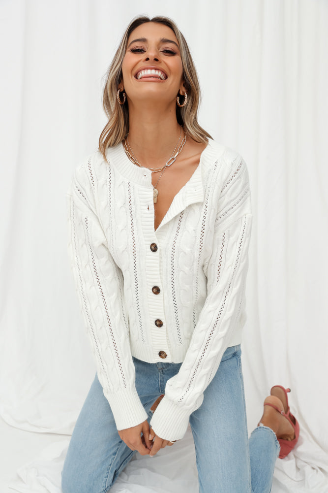 We're dreaming of strolling through the local markets of a river-side Dutch Town in the Liliyana Cable Knit Cardigan! Style yours with denim and sneakers.