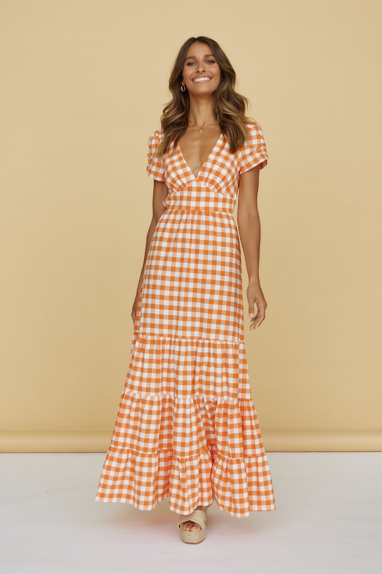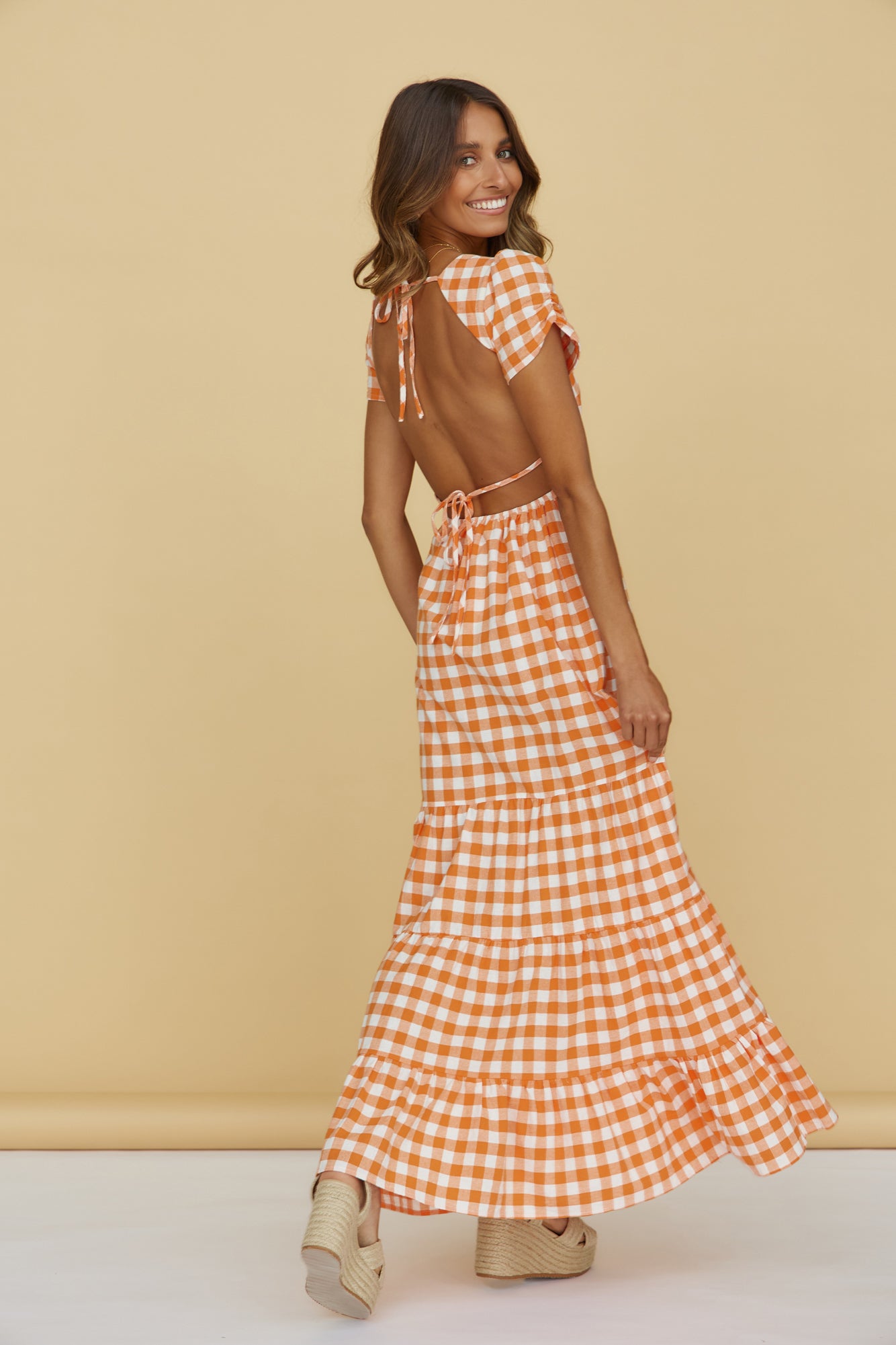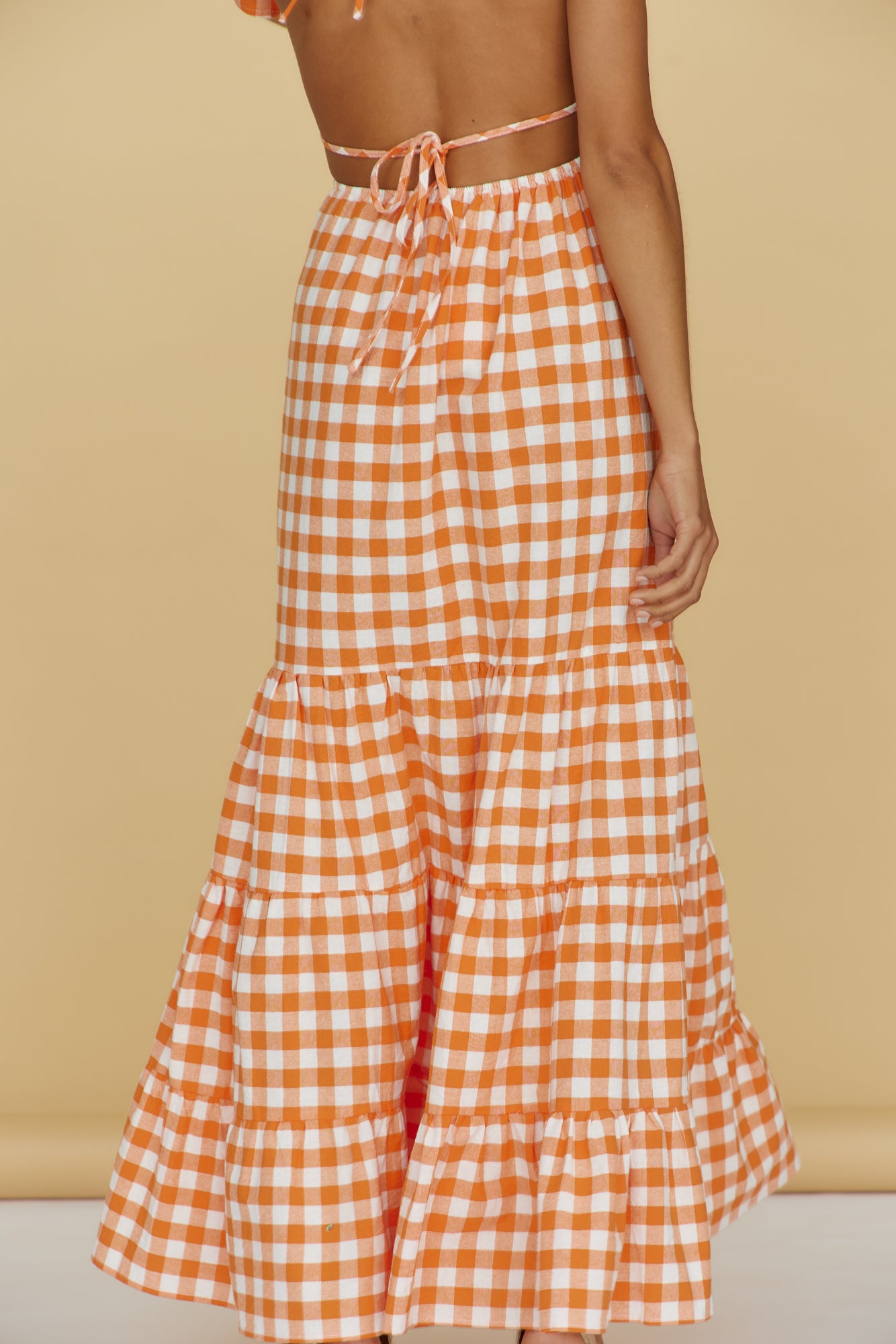 - Gingham print throughout