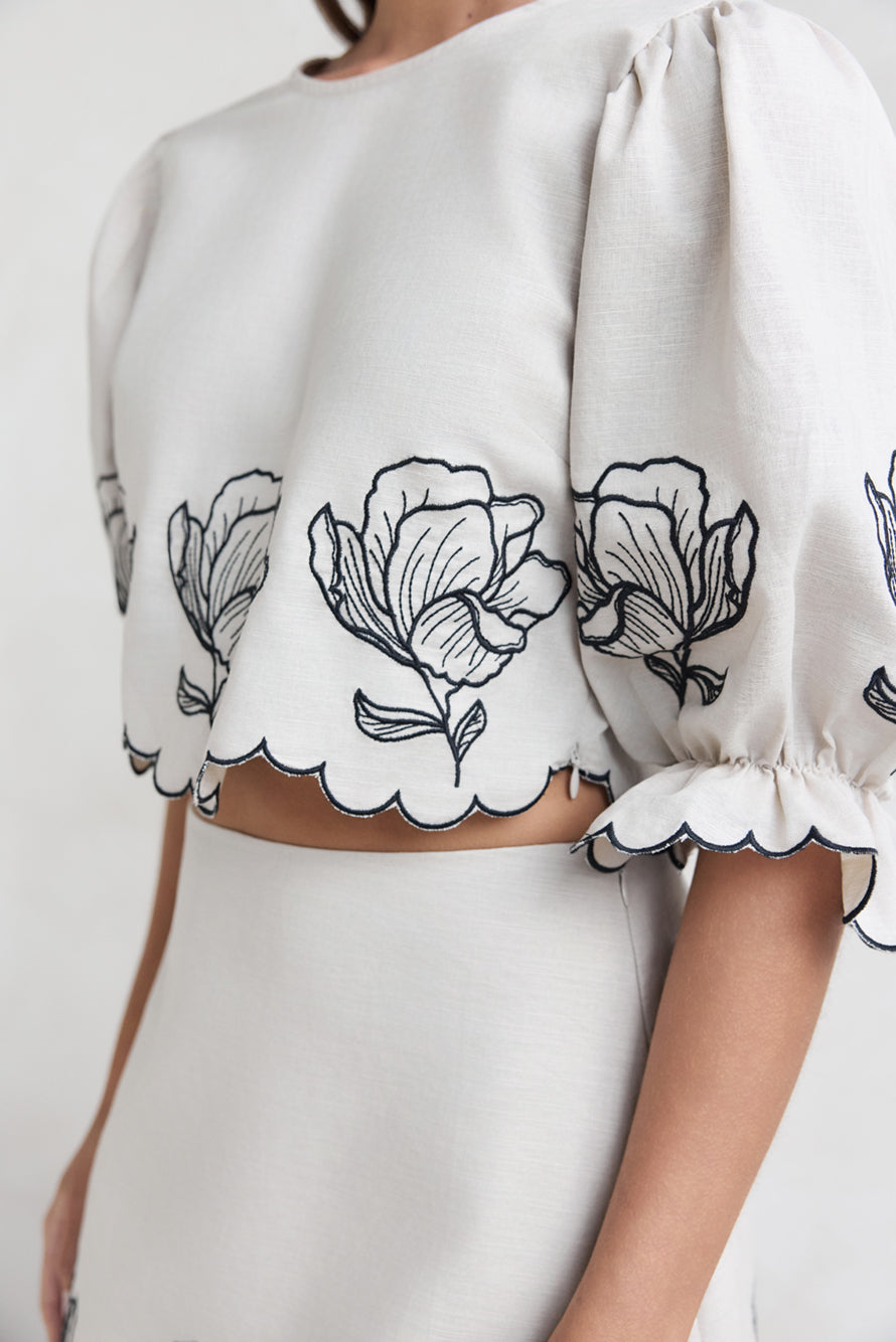 - Floral embroidery