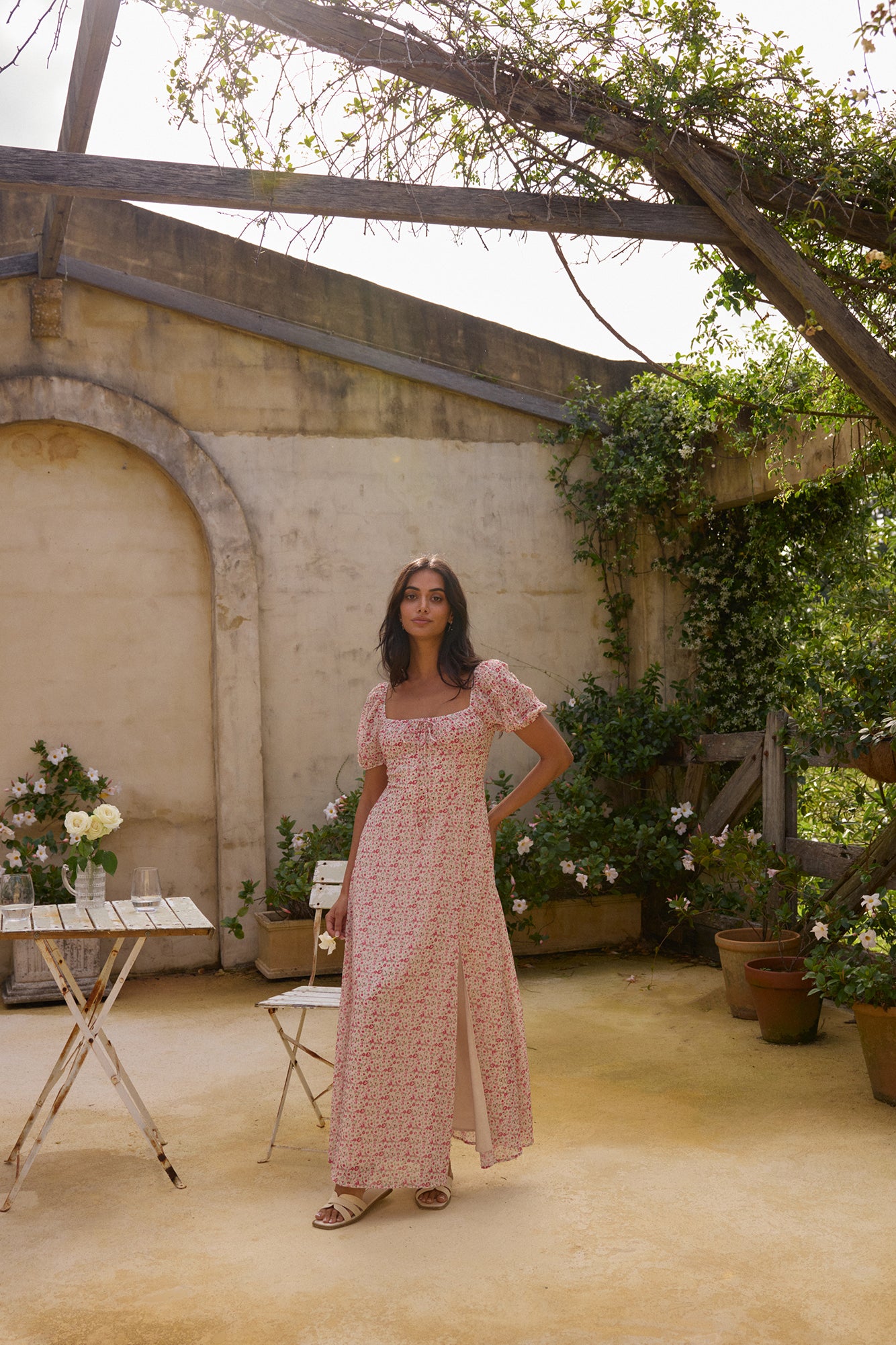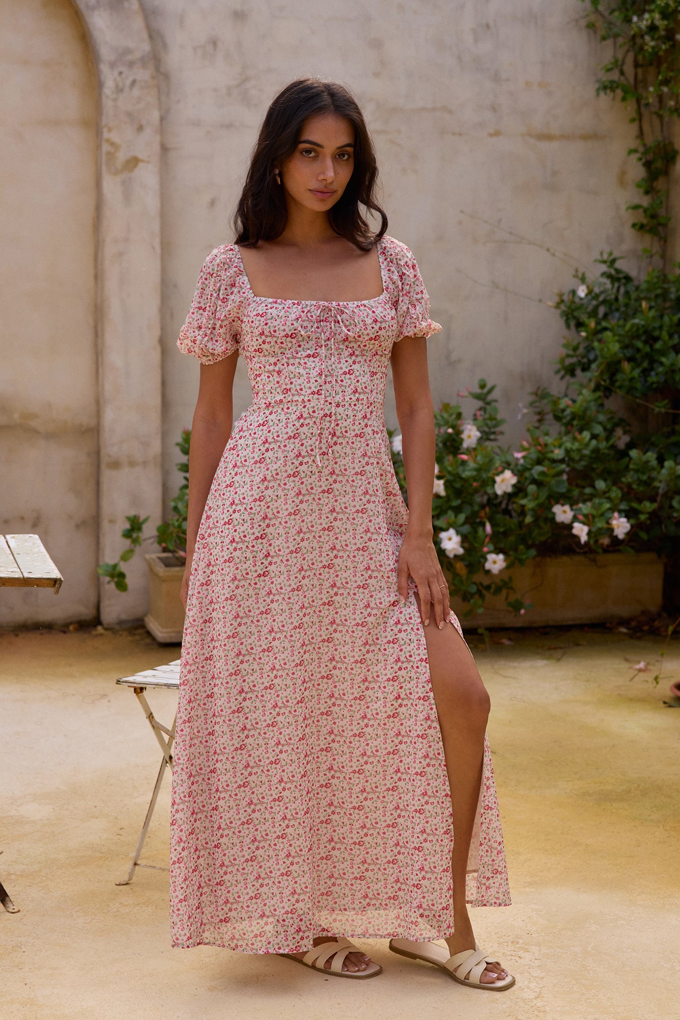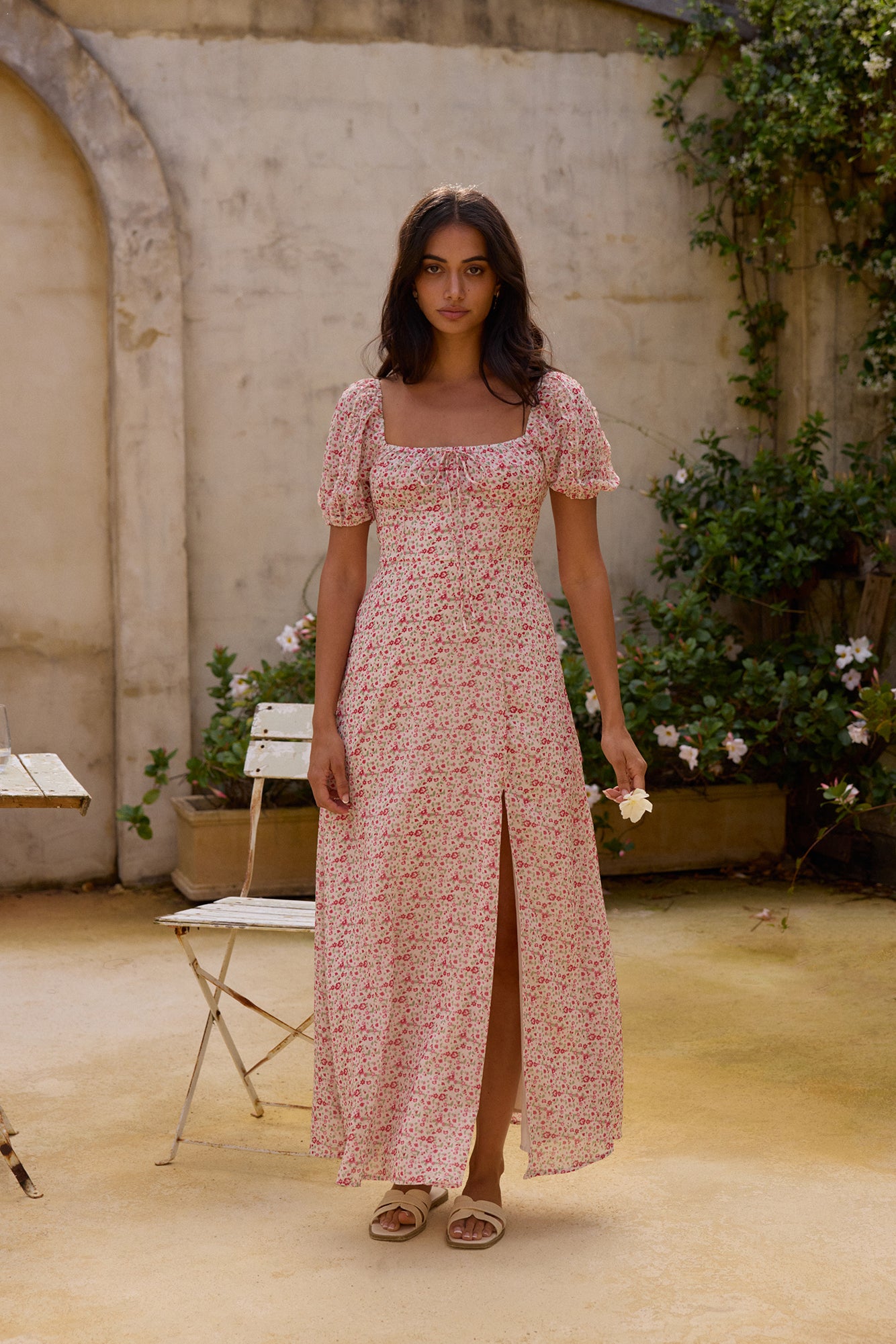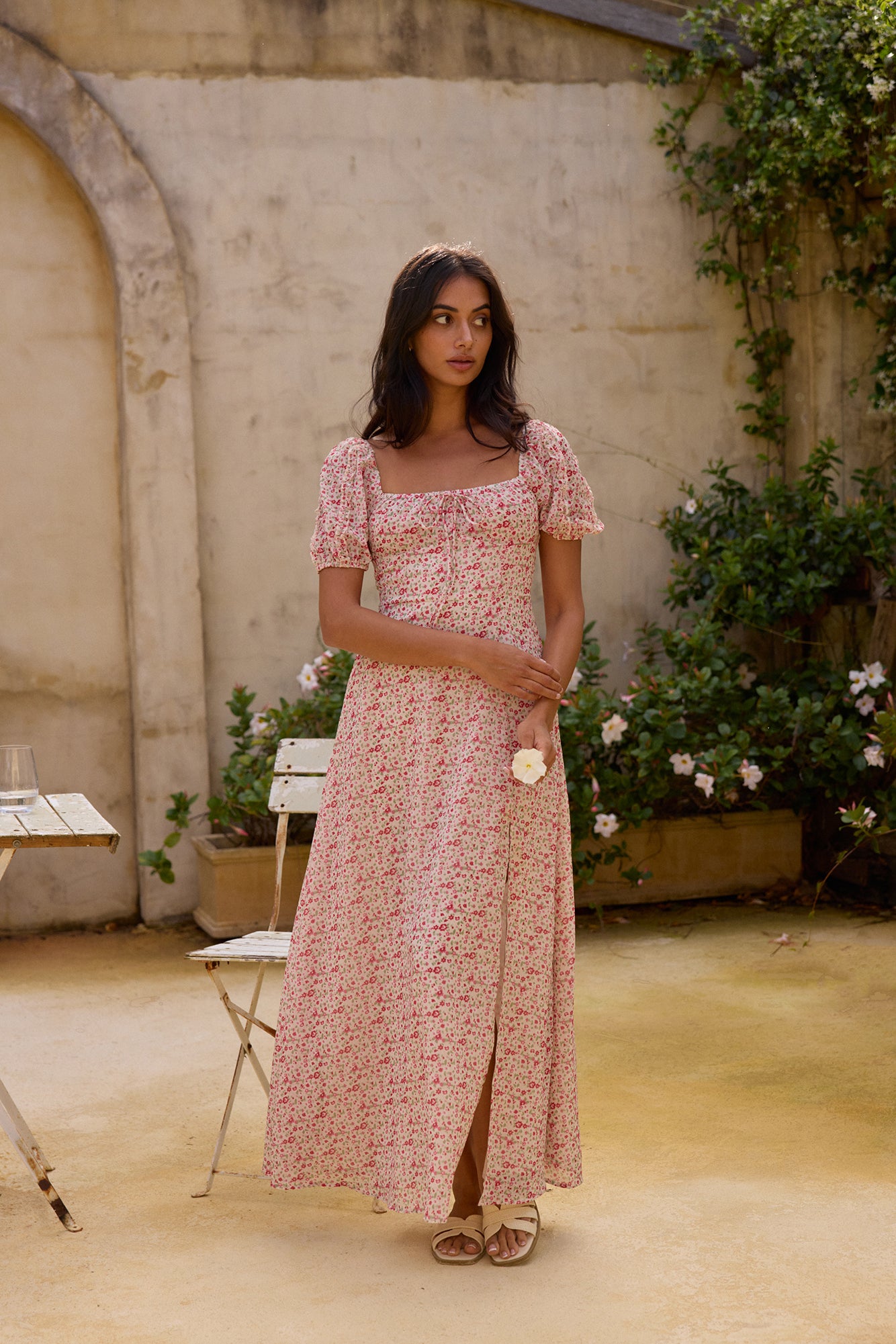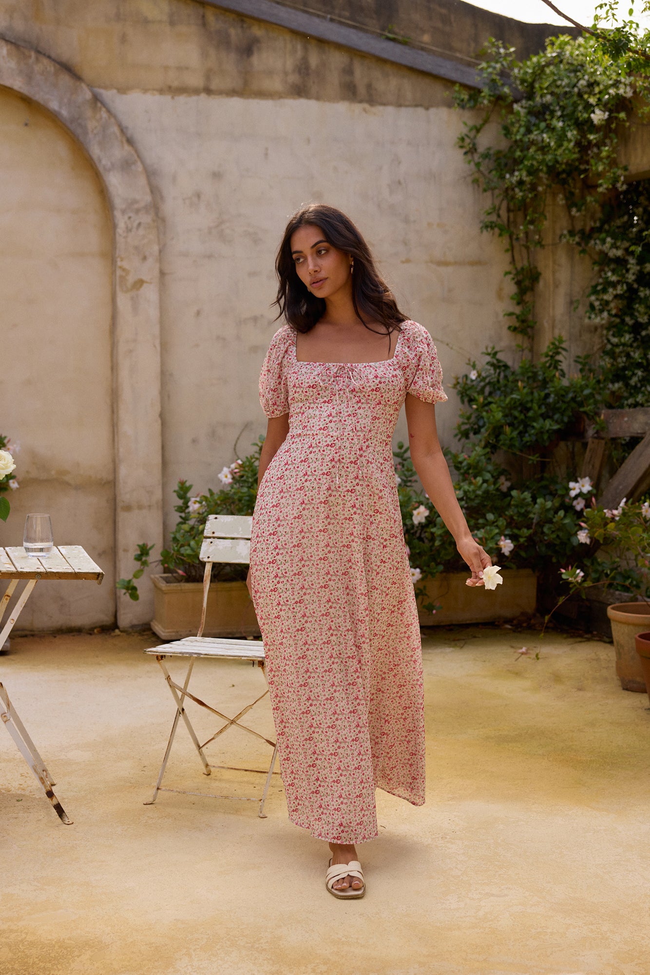Step into elegance with the Luminous Dreams Floral Maxi Dress in Pink, a breathtaking choice for garden soirées and outdoor gatherings. This romantic dress features a flattering sweetheart neckline, perfectly complemented by delicate puffed short sleeves for a whimsical touch. The flowing maxi silhouette drapes beautifully, while the soft pink floral print adds a refreshing, feminine charm. Whether you're attending a garden party, bridal shower, or sunset celebration, this dress is the epitome of grace and effortless style.