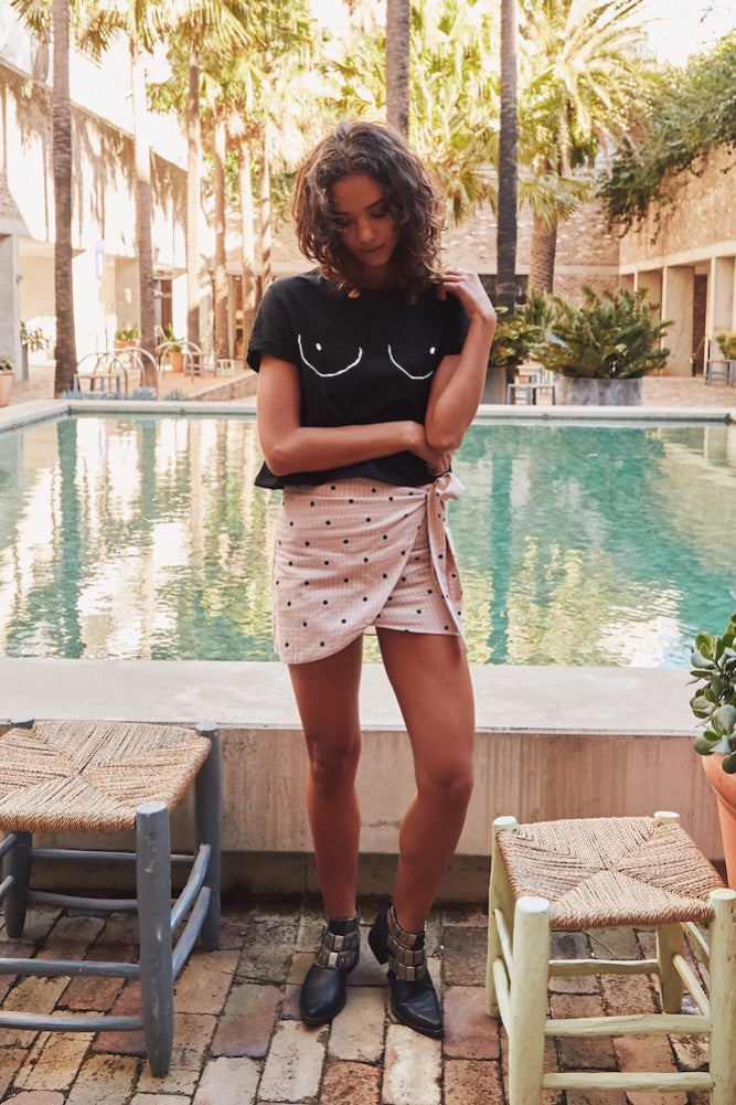 Show off your playful side with our cheeky Luna Top! This casual style is the perfect tee to pair with everything. We love wearing ours with printed wide legged pants and a lace choker!