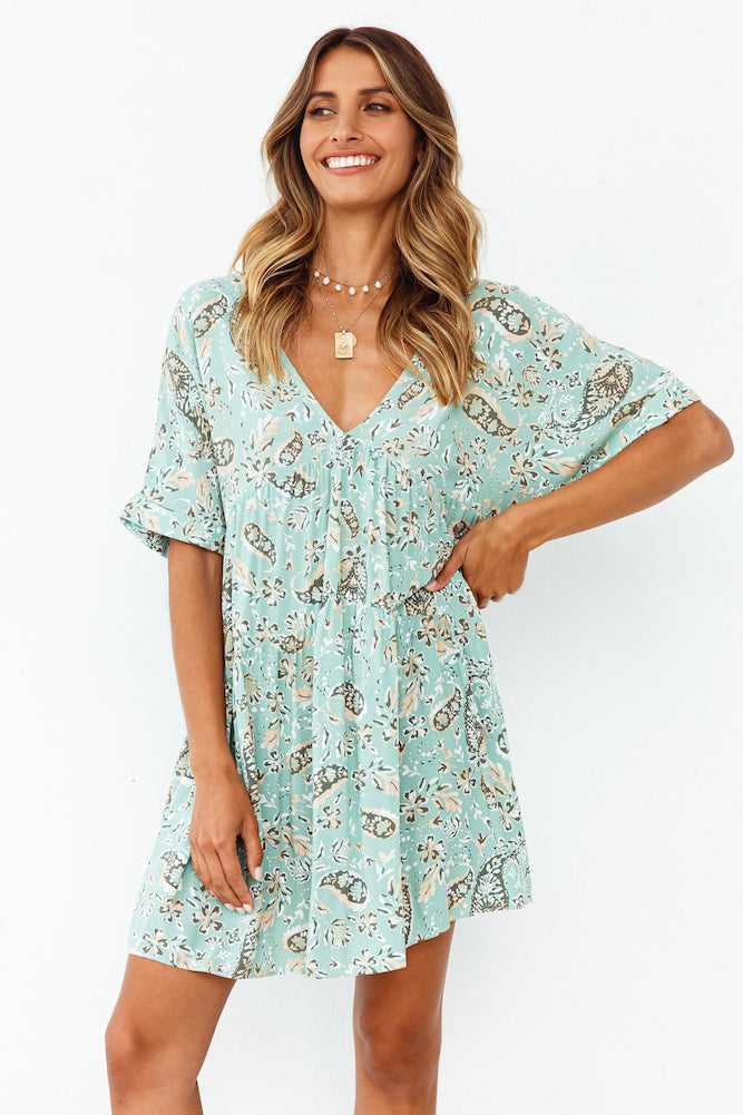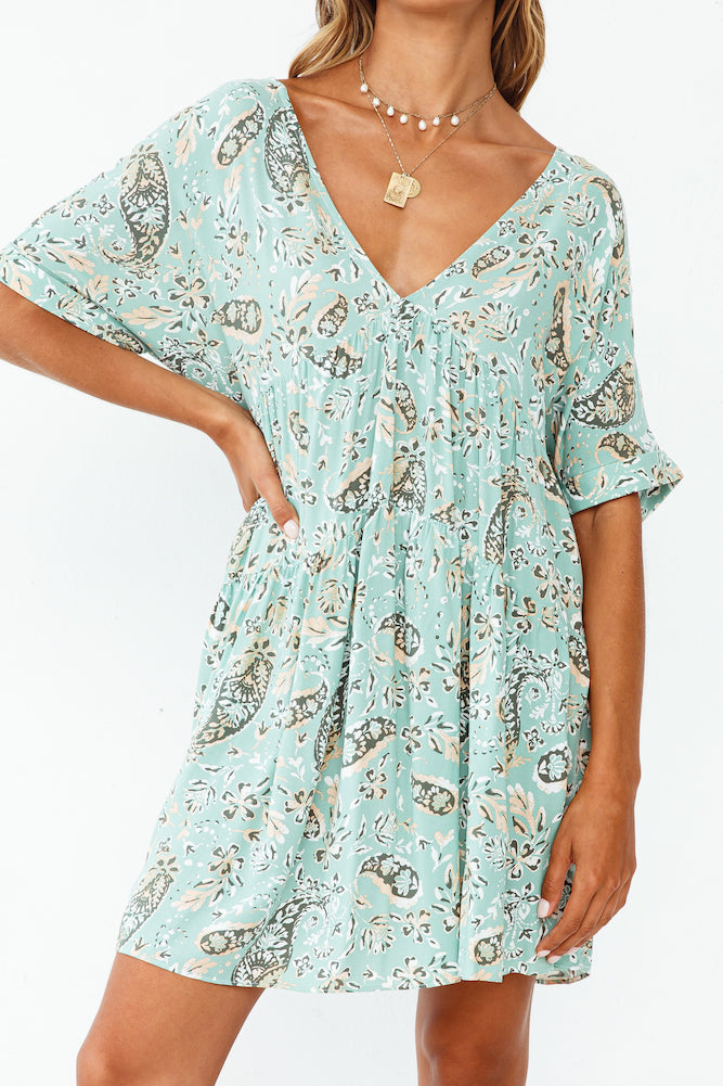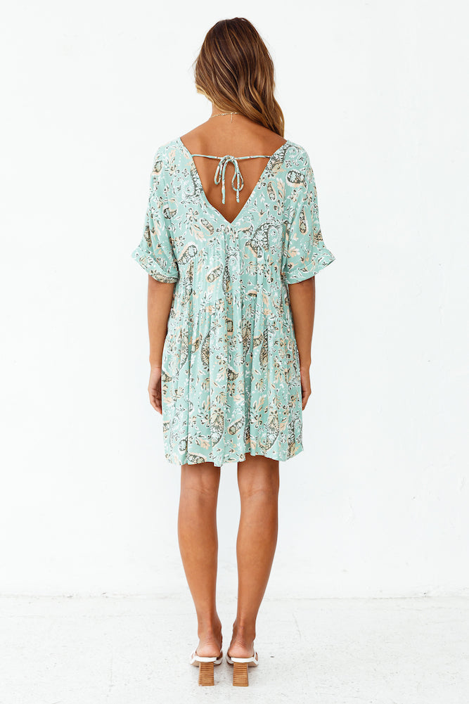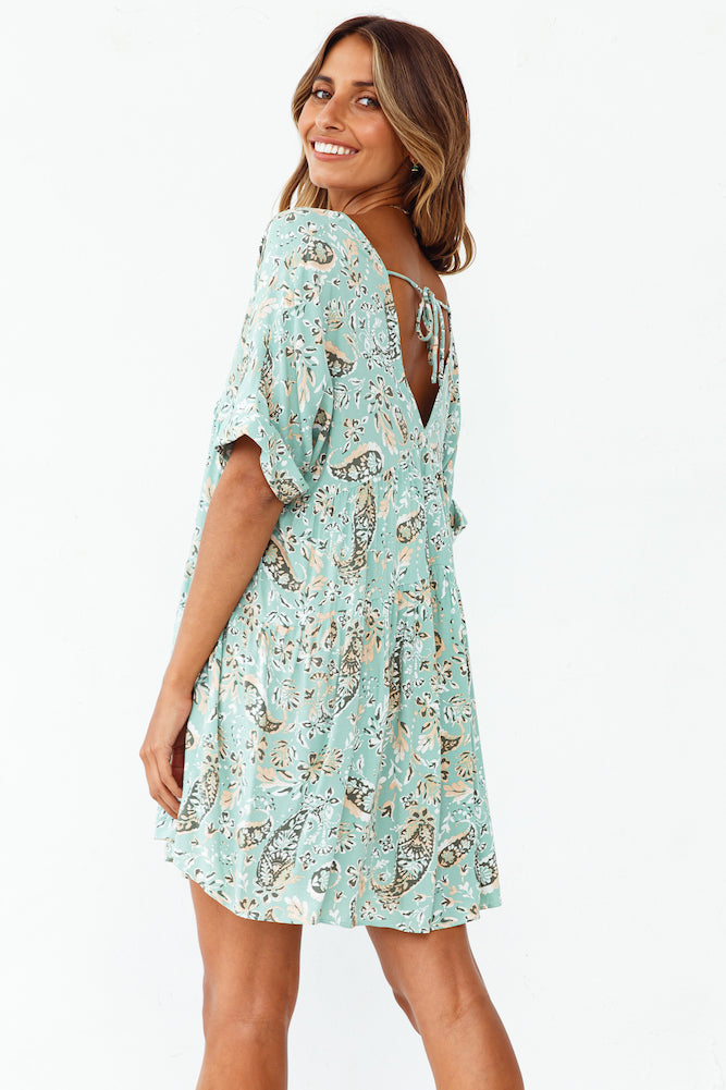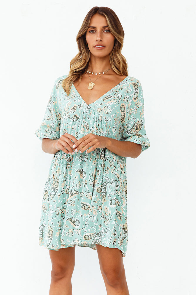 Find yourself amongst the flowers as you relax in the Meadow Breeze Dress Green! Style with your comfiest sandals and a sunhat.
