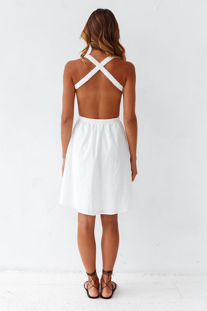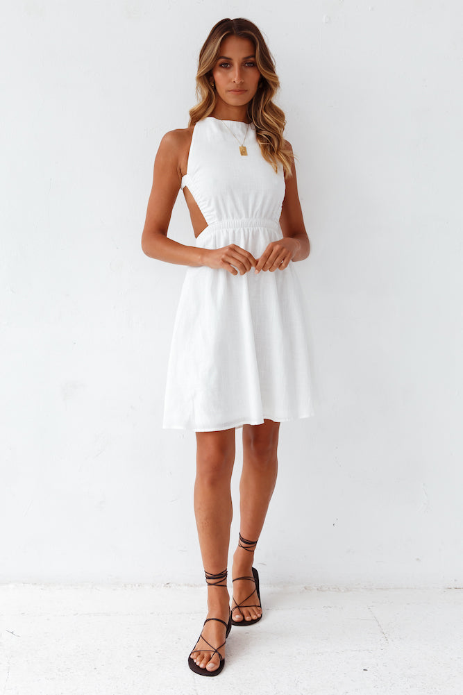 We're going to Bali and getting ready to tan in our Midday Sun Dress White! Style yours with sandals and oversized sunglasses.