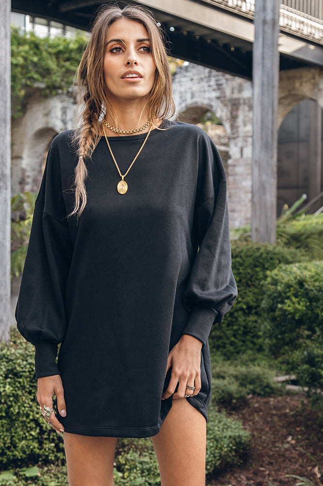 We're a little delighted with our Montana Sweater Dress. Pair this comfy dress with black booties and add silver adornments to your hair!