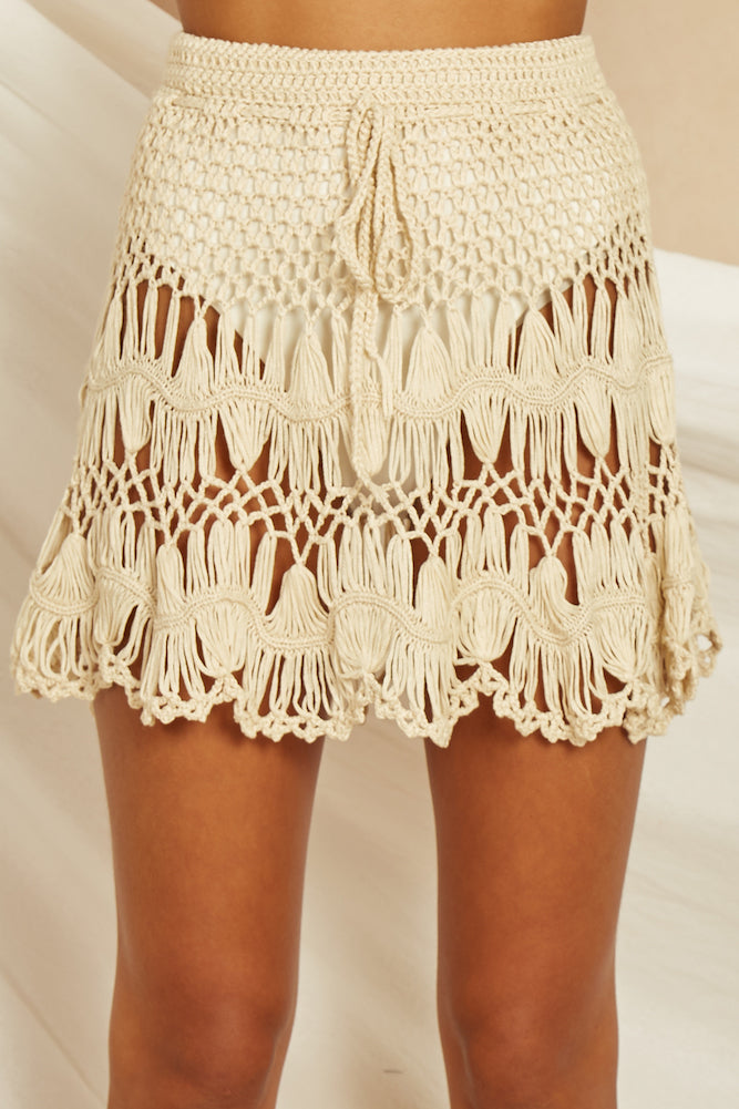 We're worshipping the sun in our Morning In Ubud Skirt! This woven, macrame style skirt is perfect for layering under shorties or layering over your favourite bikini for a subtle yet sexy cover up. Style yours with a pair of pool slides and salty, beachy waves to finish the look!