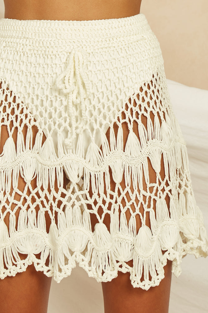We're worshipping the sun in our Morning In Ubud Skirt! This woven, macrame style skirt is perfect for layering under shorties or layering over your favourite bikini for a subtle yet sexy cover up. Finish the look with vintage silver anklets and matching earrings!