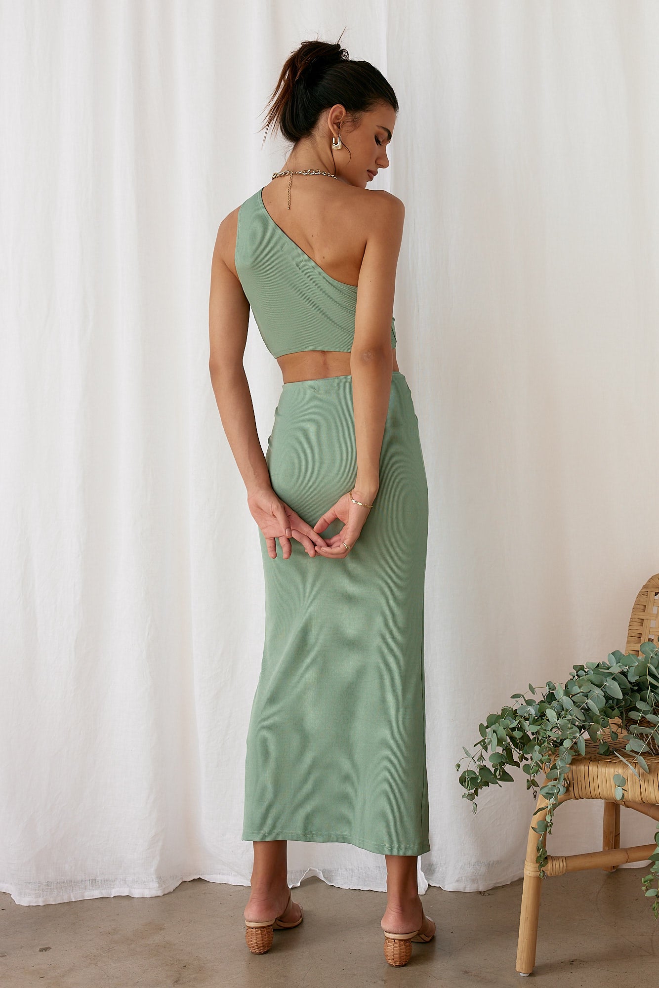 We're finding ourselves among the stars in the One Becomes Two Crop Top. Pair yours with the matching maxi skirt, neutral block heels, and style with wavy hair for your next day or night by the water.