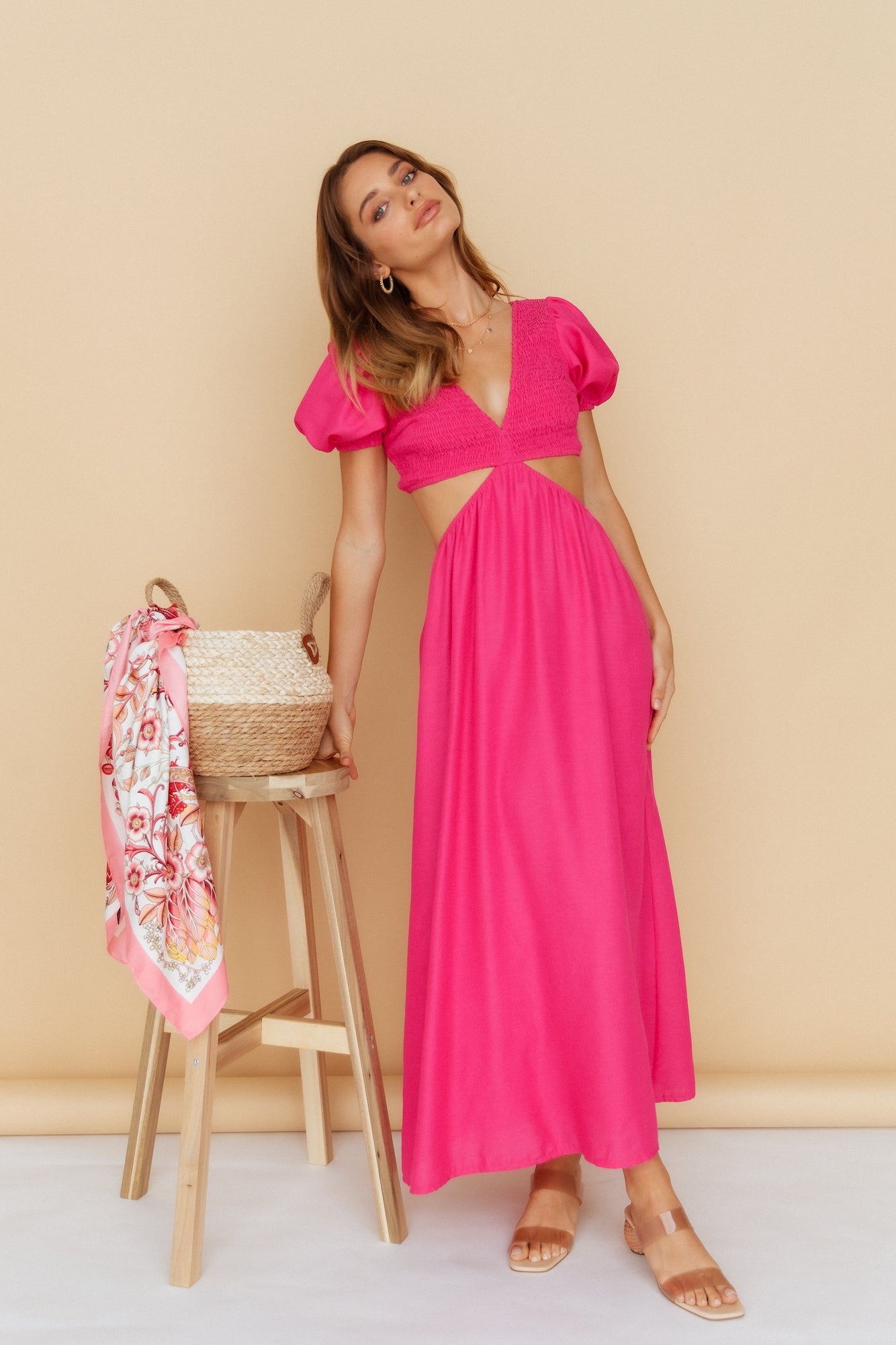 Find yourself enjoying gelato by the beach in our One Fine Day Maxi Dress. Style yours with neutral block heels and a mini shoulder bag for your next trip to the markets!