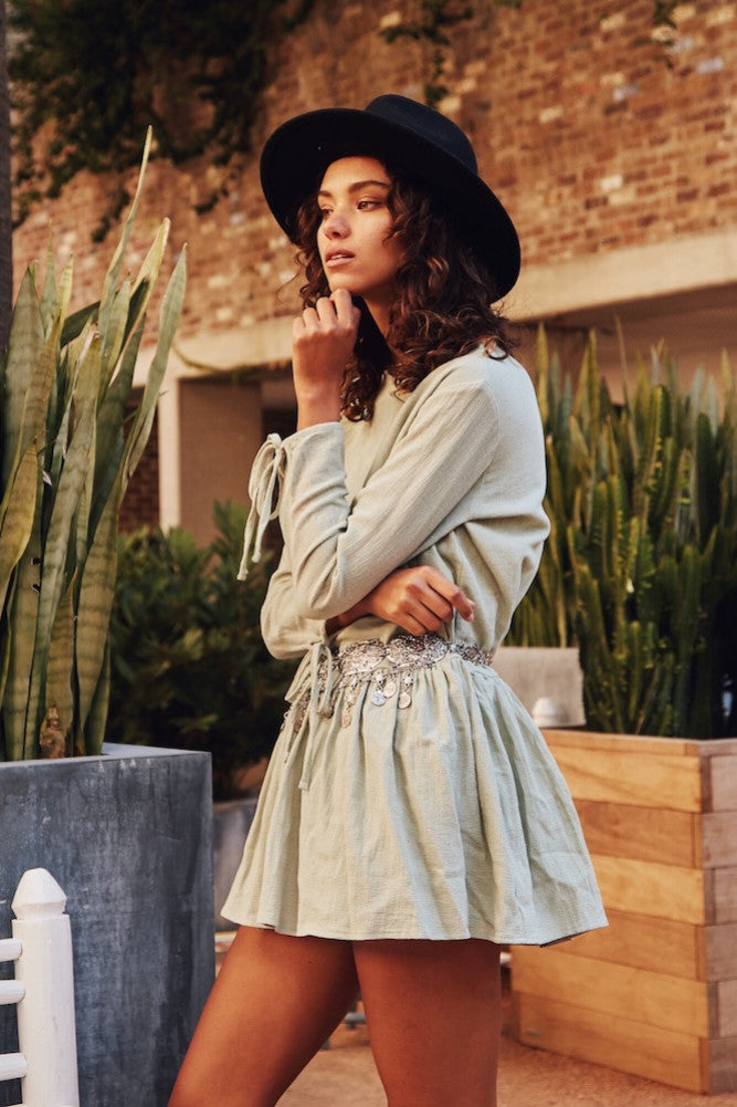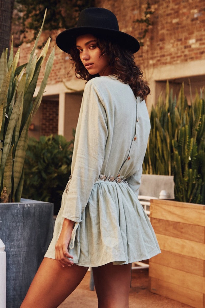 Spend the day searching for hidden gems at your local market with our Paloma Dress! This soft shade pairs perfectly with all your tan and silver accessories - finish the look with a wood block heel!