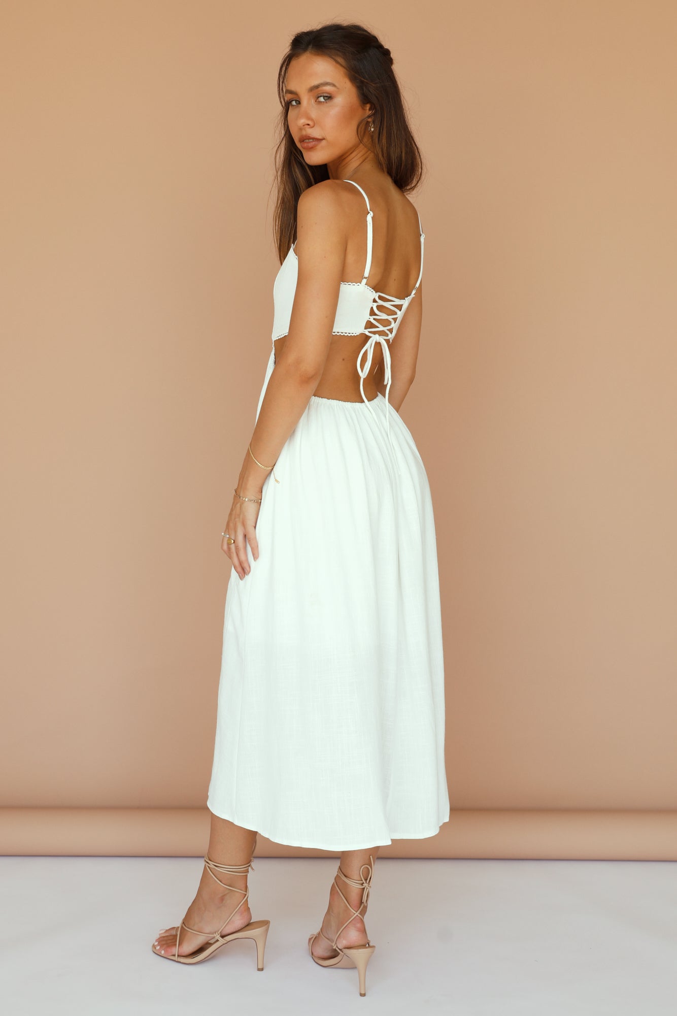 We're dreaming on slow island days under the sun with fresh coconut juice in the Pearlescent Maxi Dress. Style yours with lace-up sandals and sunkissed skin for your next day by the beach.