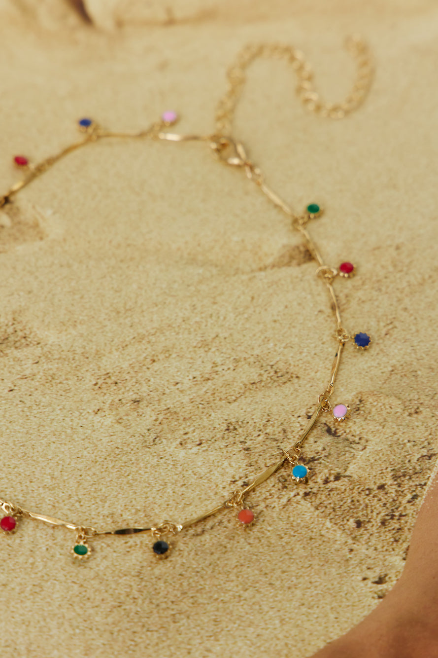 From luxe looks to a daily sweet style, the Prism Drops Necklace will have you feeling on top of the world no matter what you're wearing! We'll be dressing up in a satin slip midi dress sunkissed skin to make the gold tones pop.
