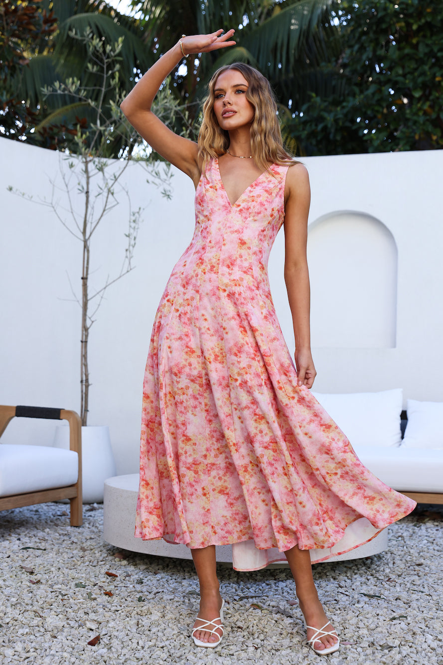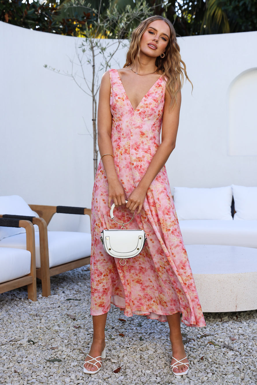 Our Reaching Out Midi Dress whispers tales of far-off lands and sun-kissed horizons.Let it carry you through cobblestone streets, under vibrant bazaars, and into the embrace of the unknown. Style with heels and curls!