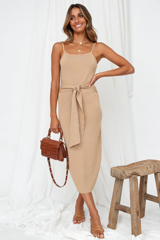 Shift into neutral in our Ride It Midi Dress! Style yours with heeled mules and a woven bag.