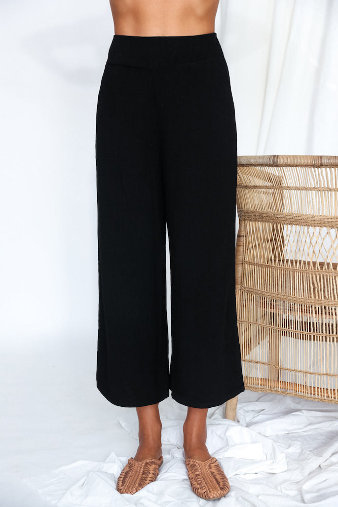 Catch us lounging in the sun wearing our Ride To Milan Pants! Pair yours with our Ride To Milan Crop Top and golden anklets.