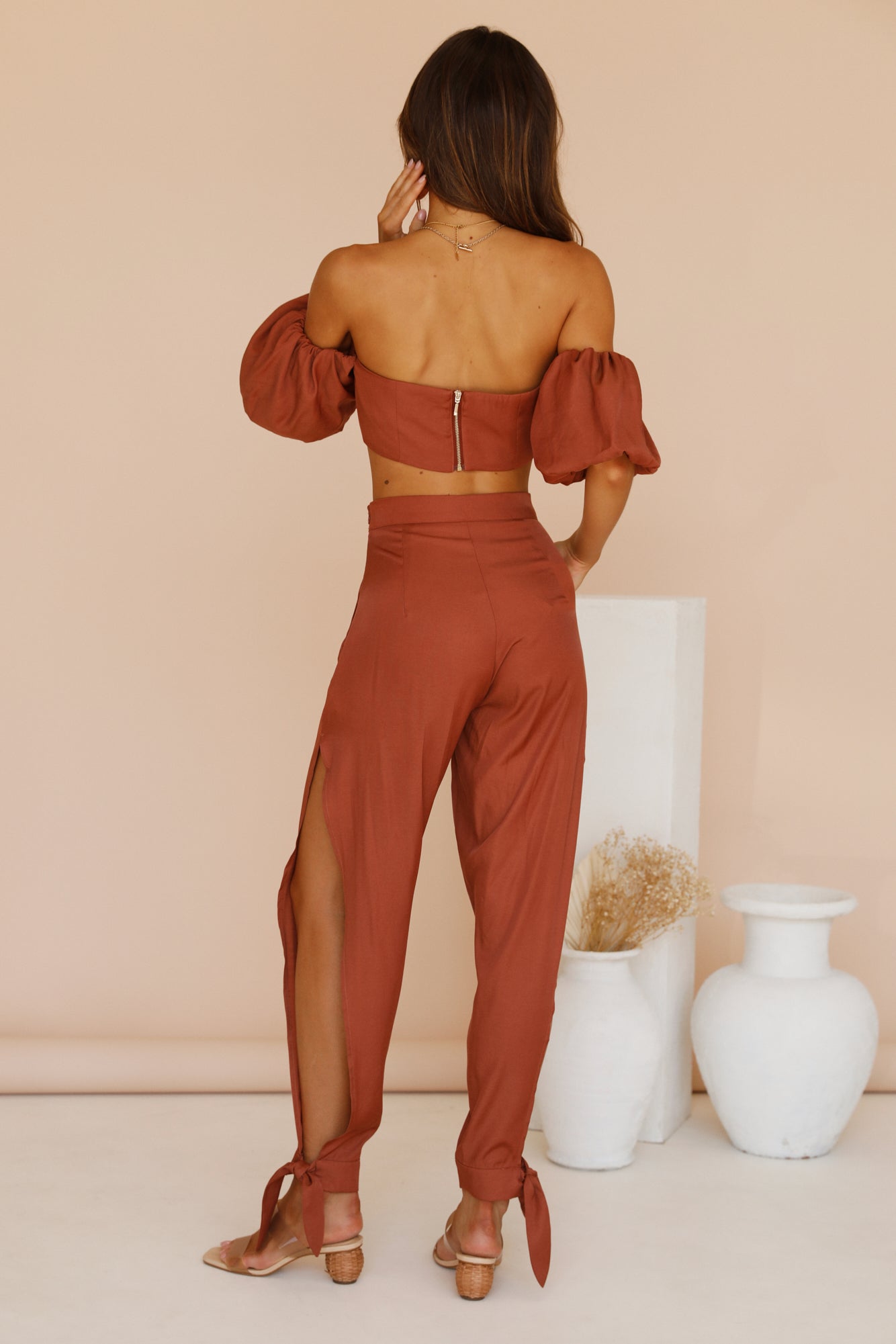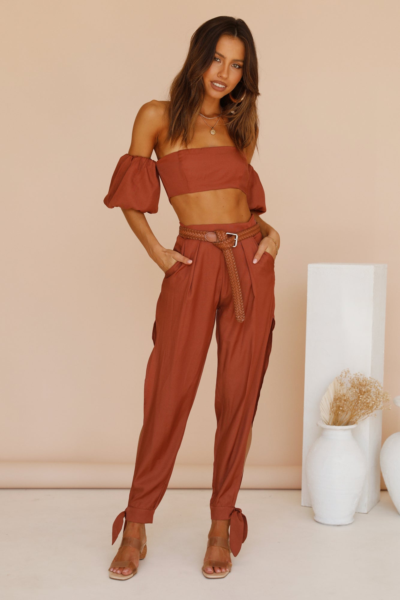 Glow in golden hour in the Cass Top by RUNAWAY THE LABEL. We'll be styling ours with the matching pants and gold adornments for slow days in the sun.