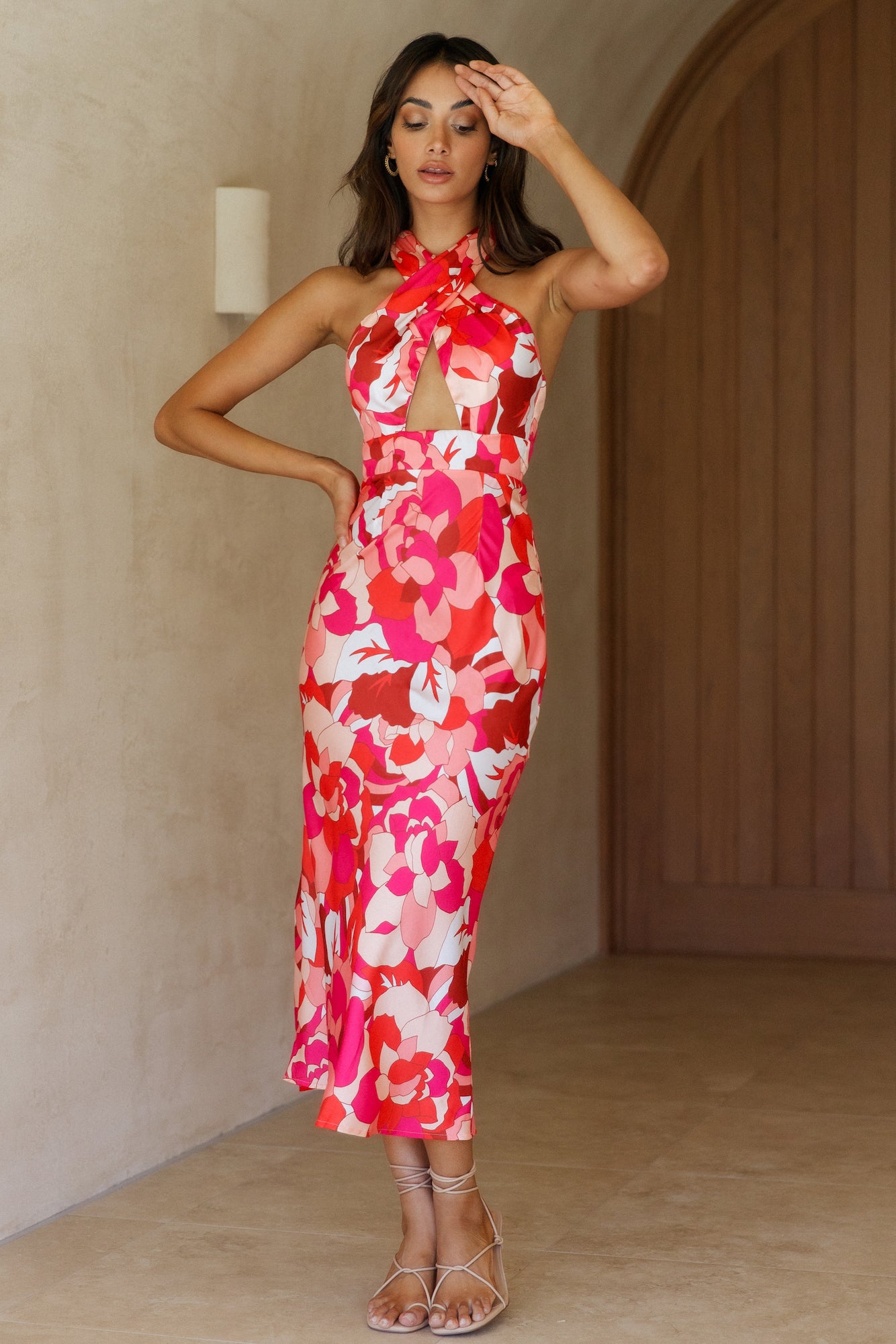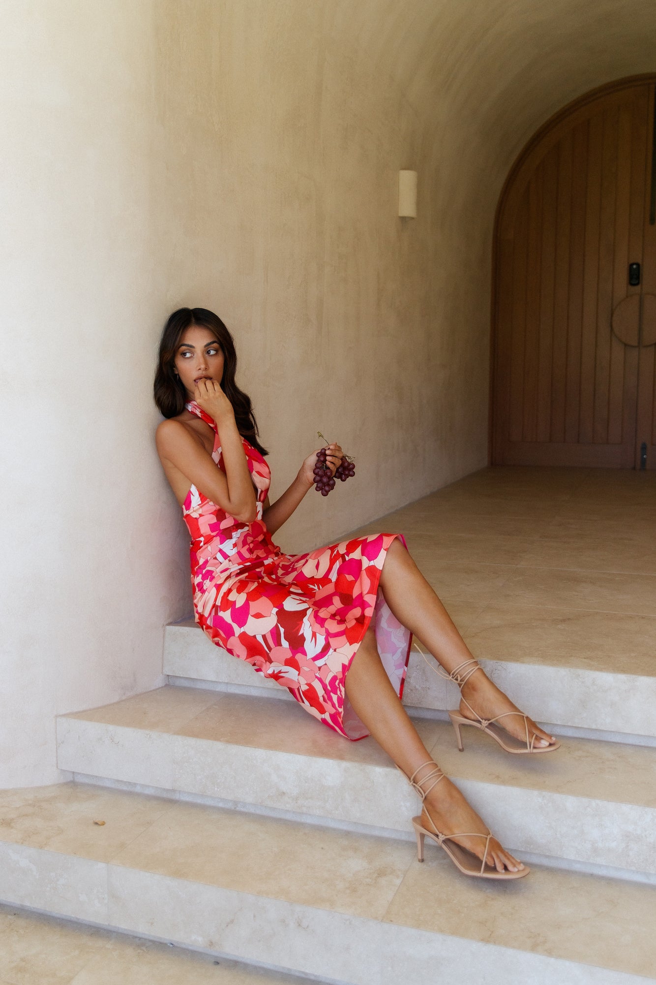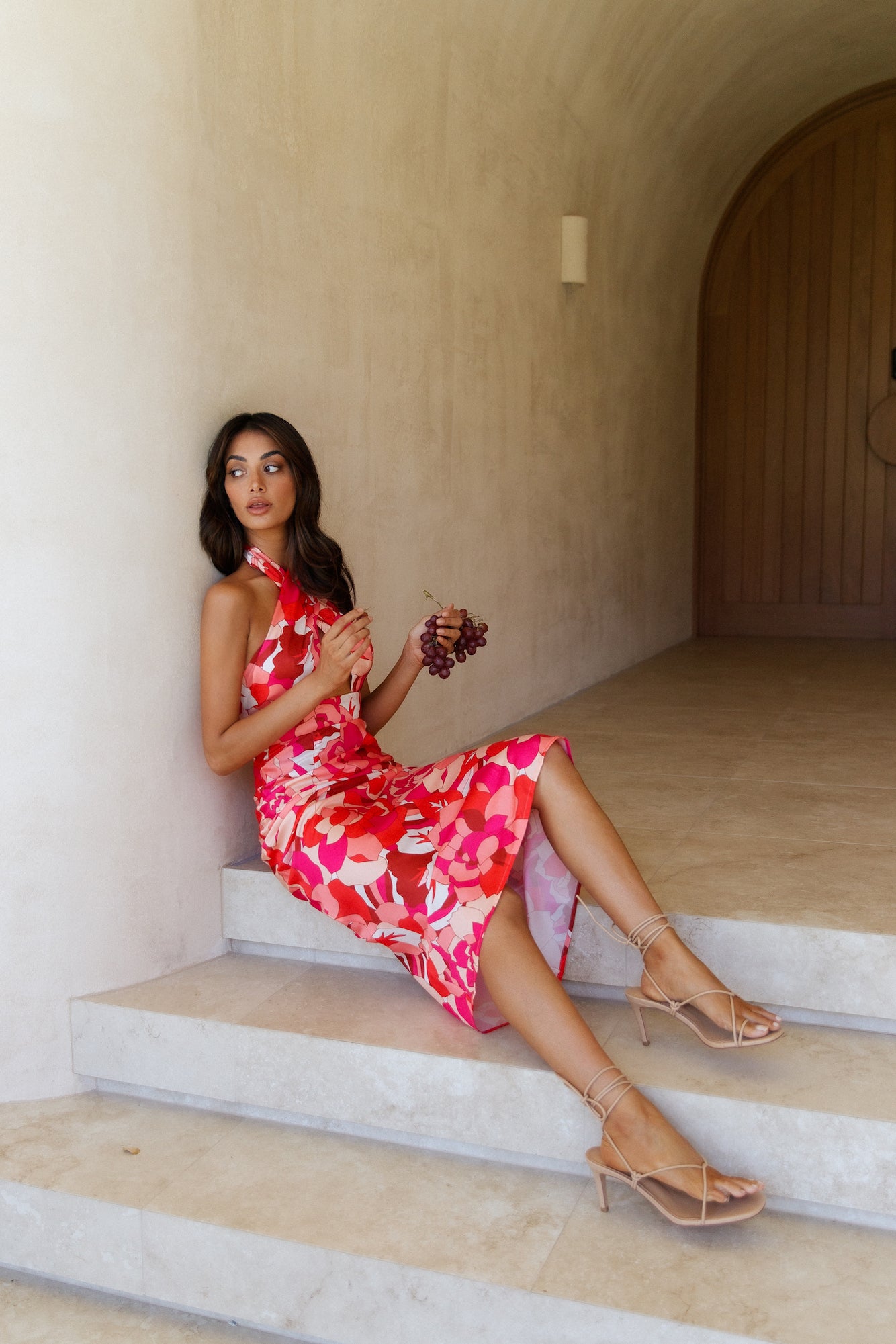 Stand out from the crowd this summer in the bright colours of the Mindy Midi Dress by RUNAWAY THE LABEL. We'll be styling ours with neutral block heels and sunkissed skin for our next party by the harbour.