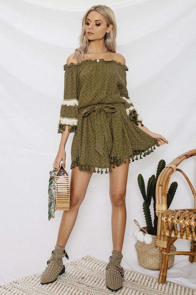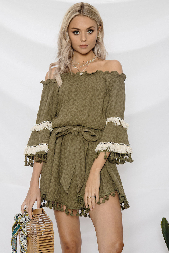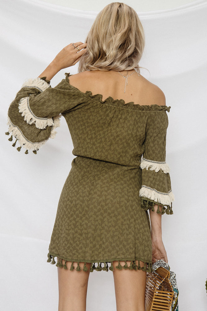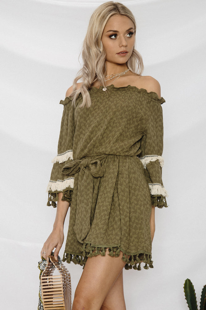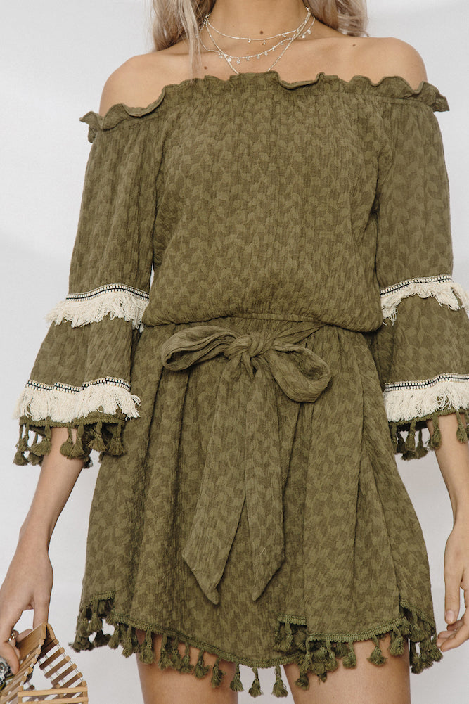 Inspired by midnight strolls in our favourite beach town on the Mexican coast, the Sayulita Dress is all about good vibes. With an on trend off the shoulder neckline perfect for catching rays. We love pairing the tassel and embroidered trim details with a structured box bag and some woven sandals!