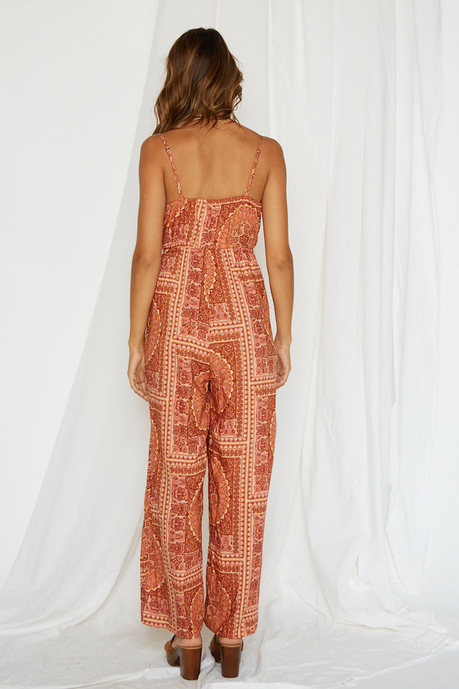 Reminiscent of decadent 70s paisley prints, our Shuffle Jumpsuit is a wonderful, vintage-inspired piece. Style yours with hexagonal sunglasses and a wooden block heel!