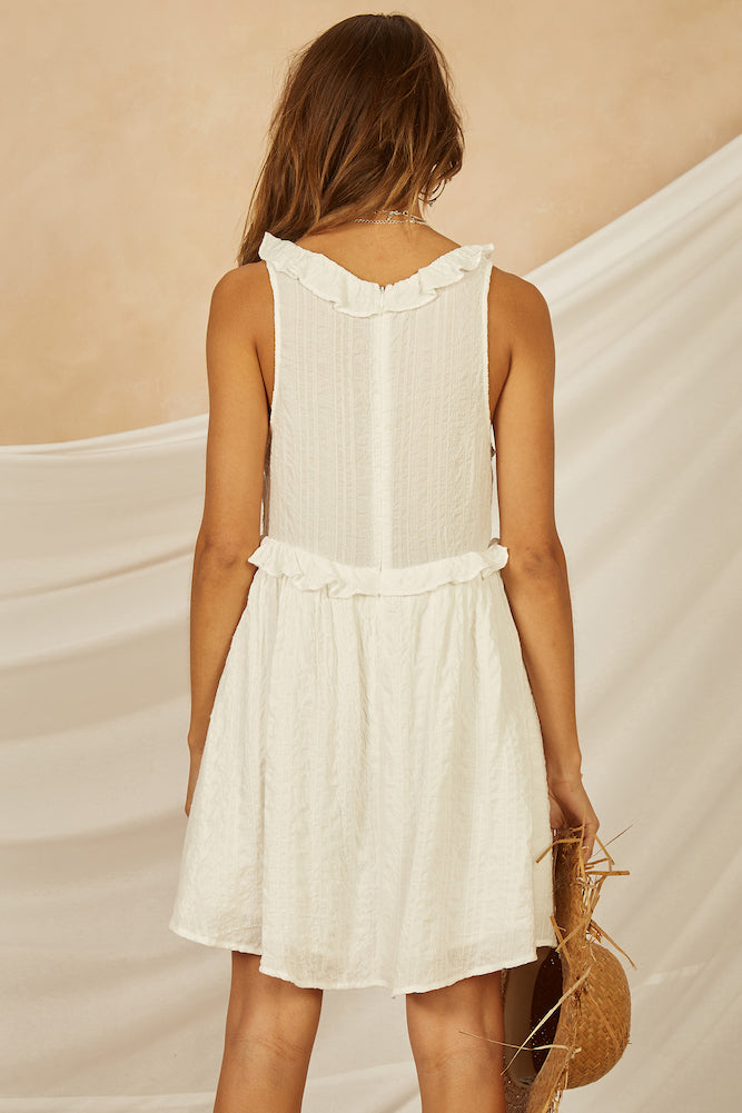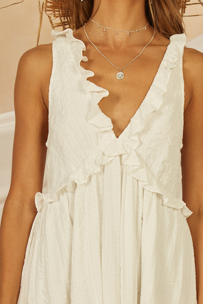 We're immersing ourselves into the season and thinking only warm thoughts! Our dreamy Silver Sands Dress is our go-to post beach attire - just add a straw boater hat and nude slide for the Fortunate One look we love!