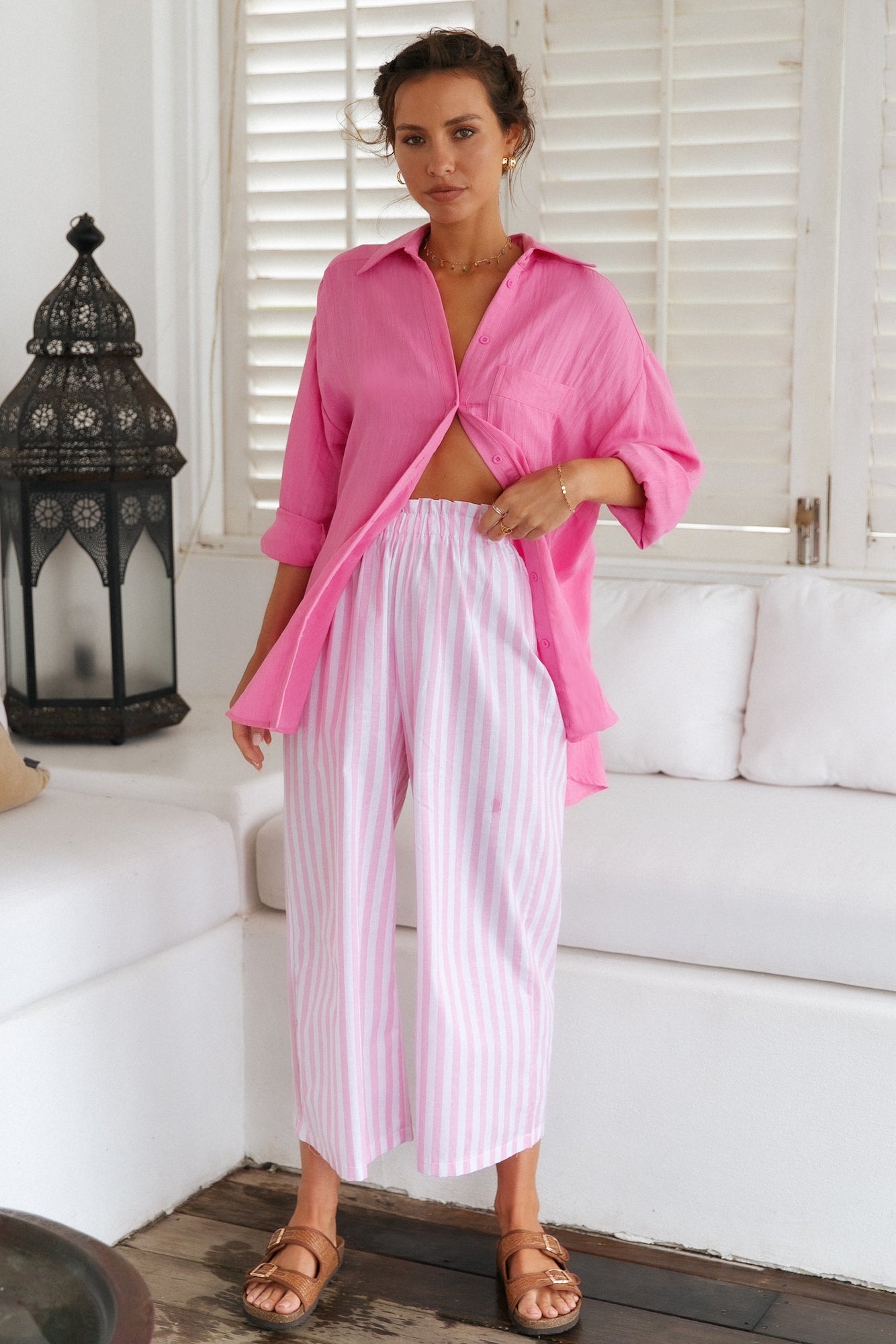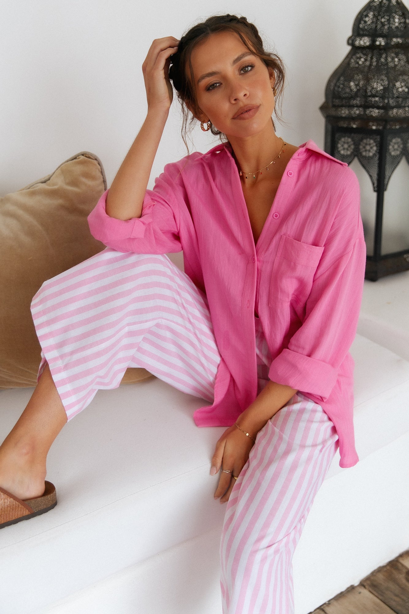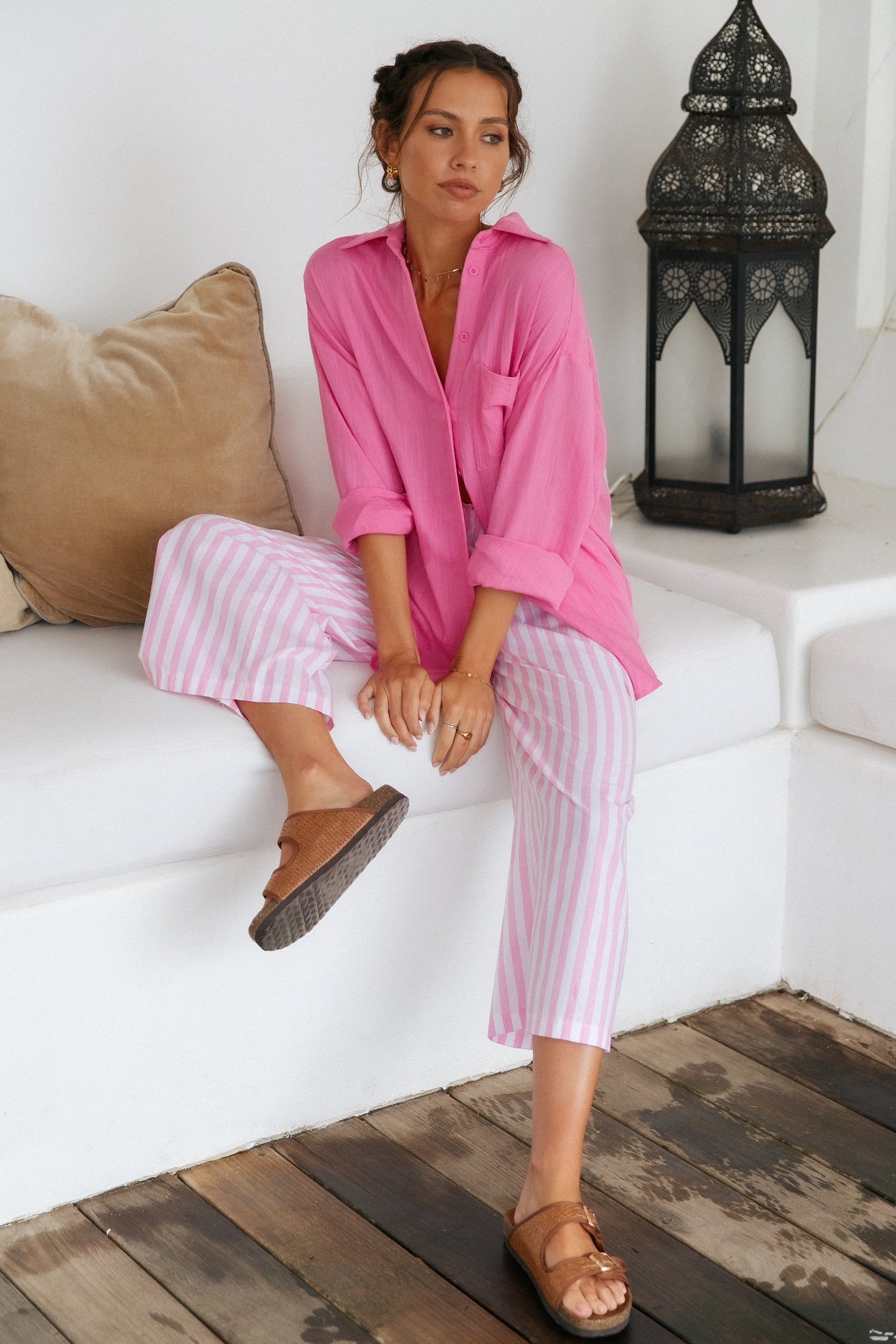 Enjoy the seaside breeze on your morning walks in the Staying Cool Shirt. We're styling ours with breezy shorts and beige slides.