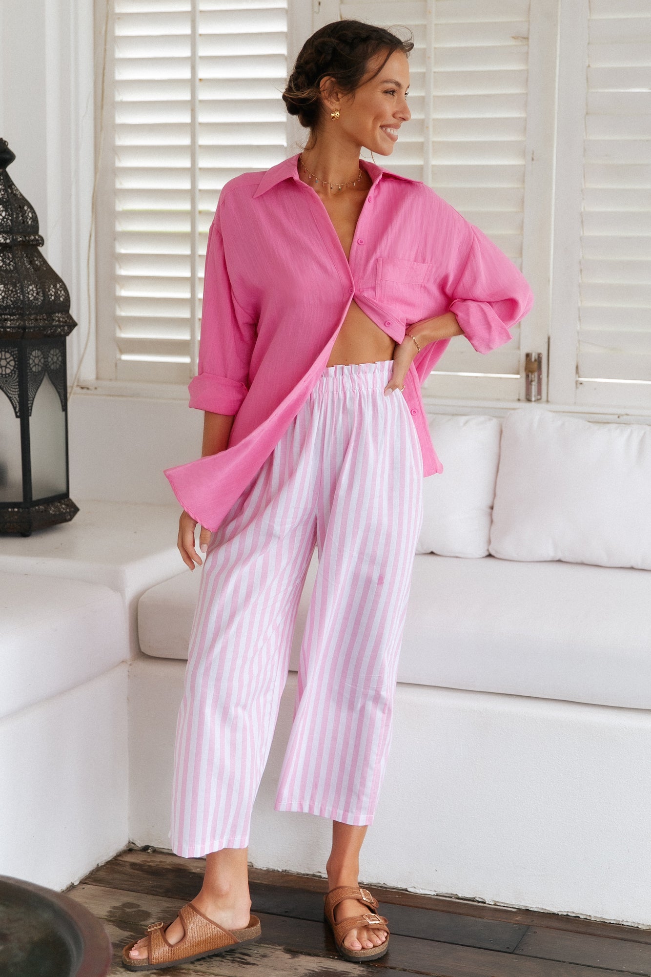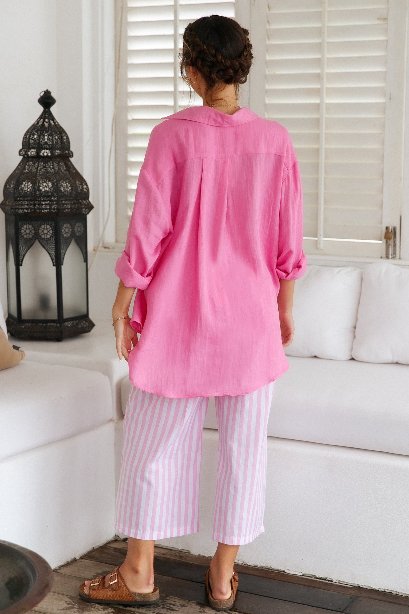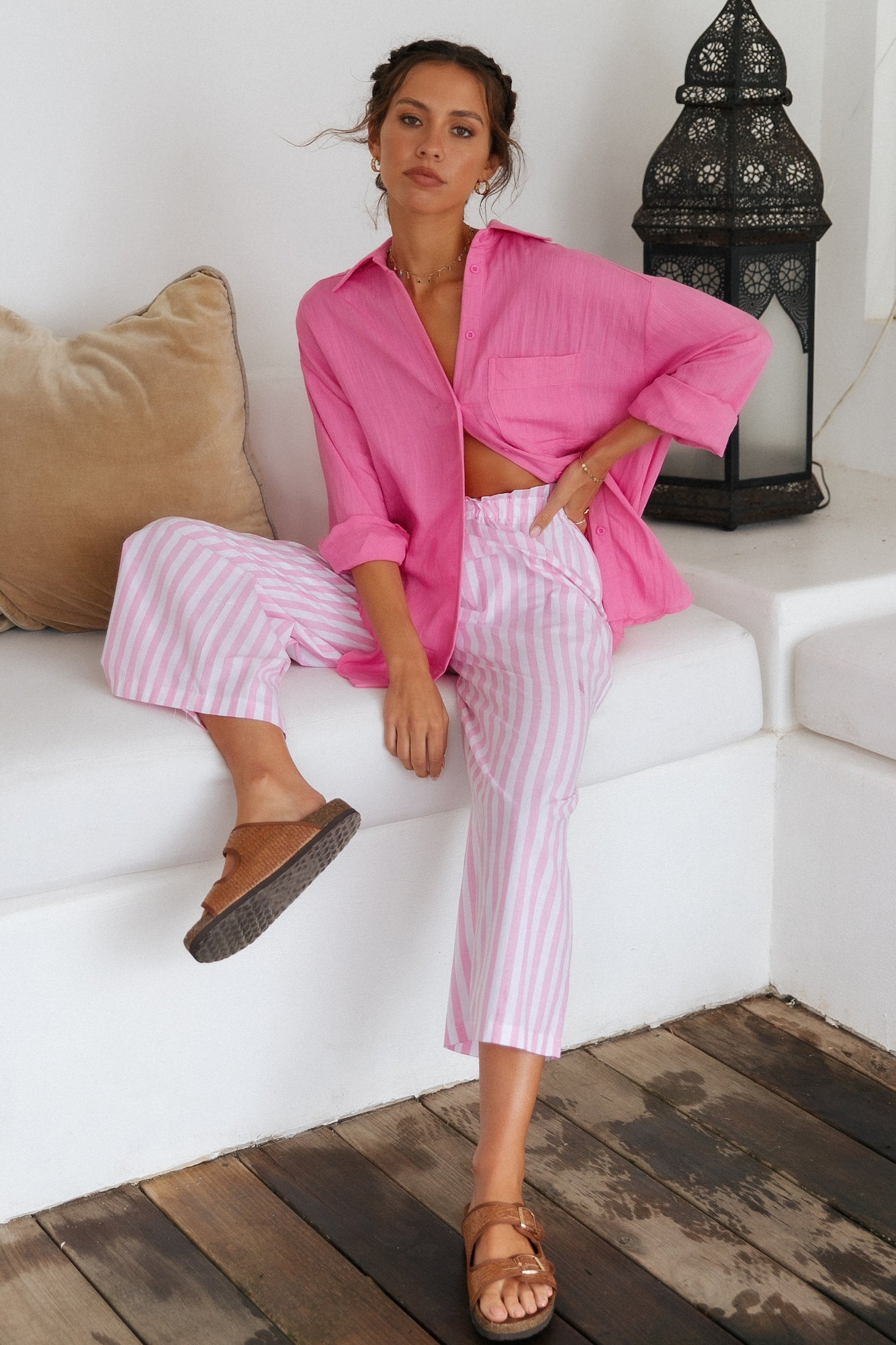 Enjoy the seaside breeze on your morning walks in the Staying Cool Shirt. We're styling ours with breezy shorts and beige slides.